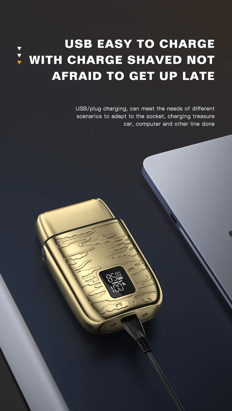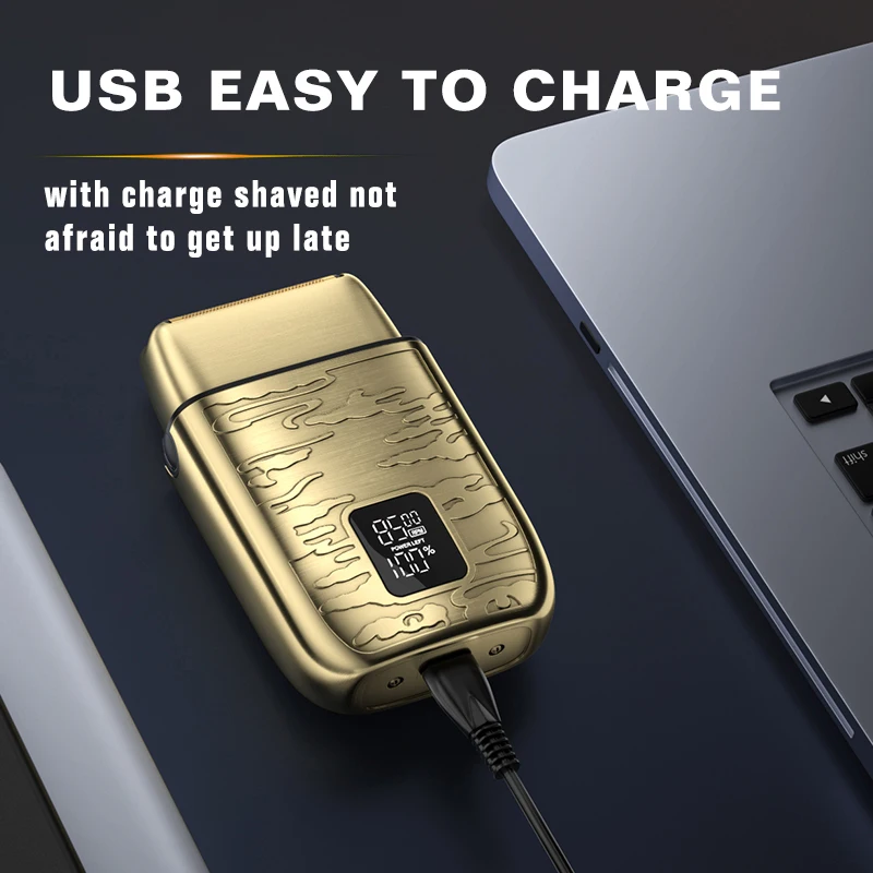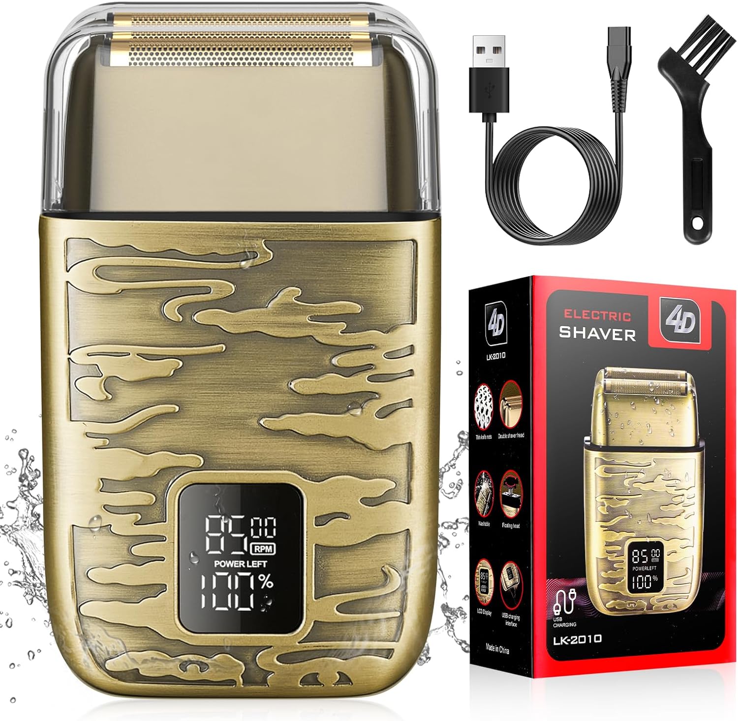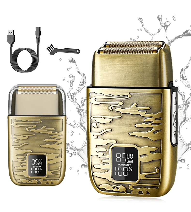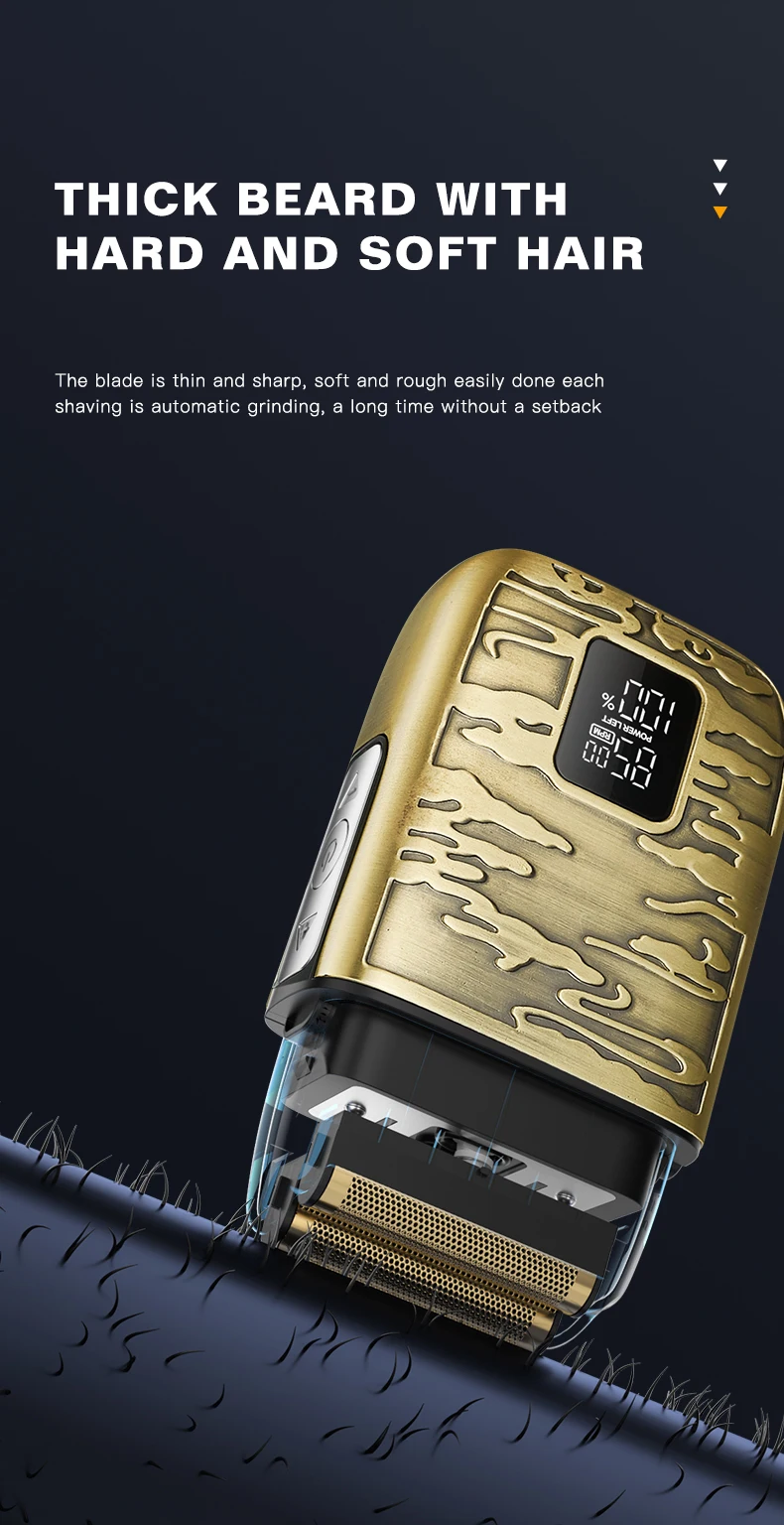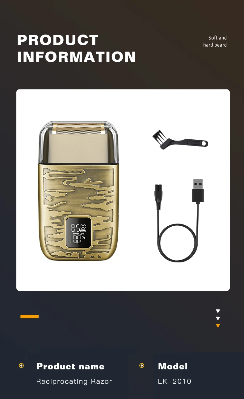 4k -Rasoir électrique LK-2010 tout en métal , avec afficheur numérique, étanche, doré gold