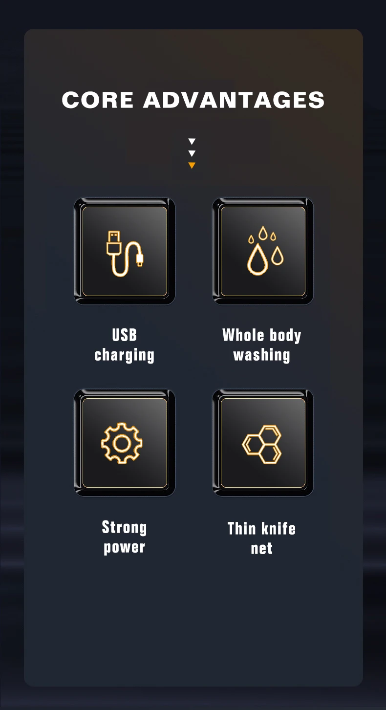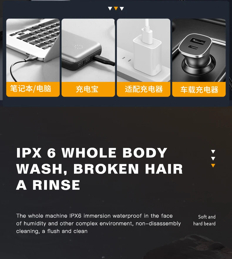 Point de vente du produit: lavage complet du corps, corps tout en métal, affichage de puissance LCD, double lame alternative