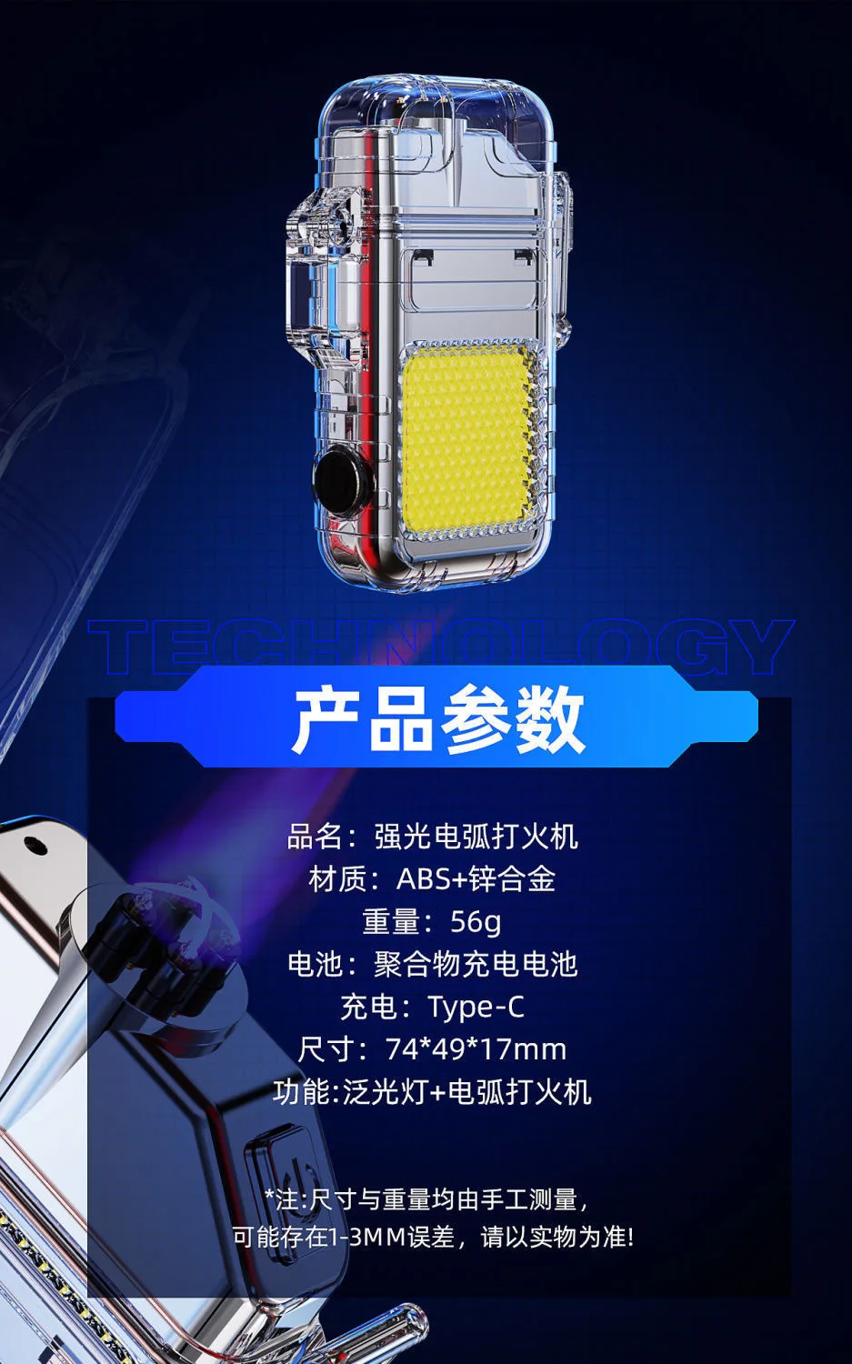 Briquet lampe de poche multifonctionnelle, mini porte-clés,