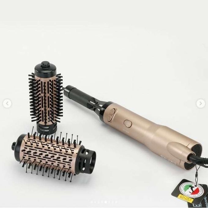 Kit complet pour une multitude de styles:La brosse rotative en céramique de 50 mm en poils de sanglier et nylon apporte du volume et de la forme aux cheveux. La brosse non rotative de 20 mm est idéale pour les cheveux courts et offrir une finition précise. La tête lissante en céramique offre une finition lisse et brillante.Le concentrateur de pré-séchage est parfait pour éliminer l’humidité avant le brushing.