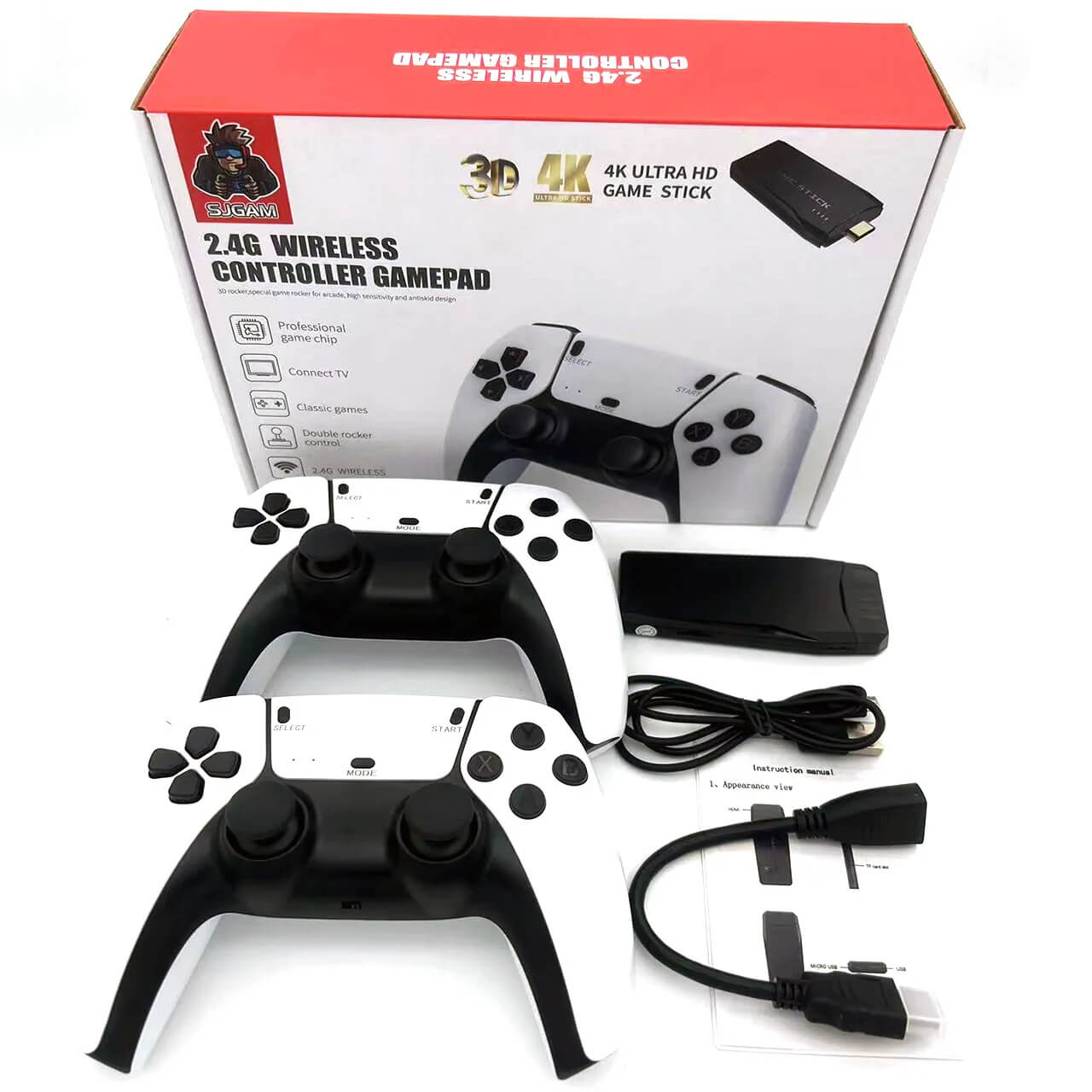 Grâce à sa connectivité HDMI 4K, profitez d’une qualité d’image exceptionnelle sur grand écran. Les deux manettes sans fil 2.4G incluses permettent une expérience de jeu fluide et sans encombrement, idéale pour jouer en solo ou en duo.
