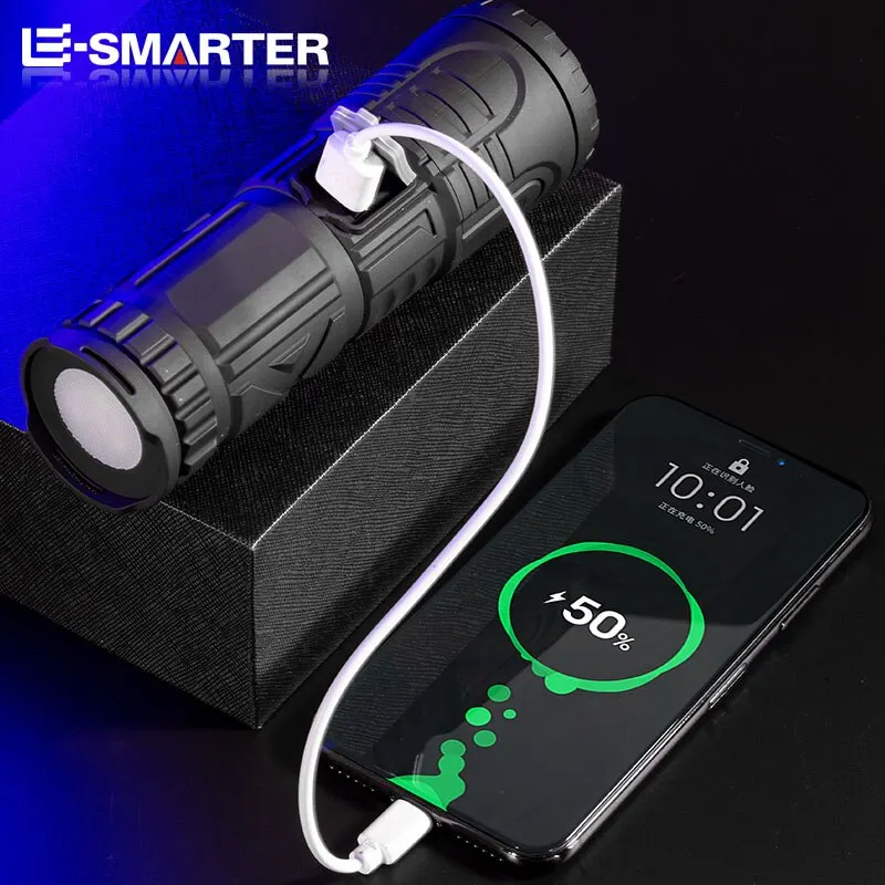 د.ج 8500 – د.ج 9900Plage de prix : د.ج 8500 à د.ج 9900E-Smarter X3 – Lampe torche LED puissante 30W rechargeable USB, waterproof avec zoom télescopique