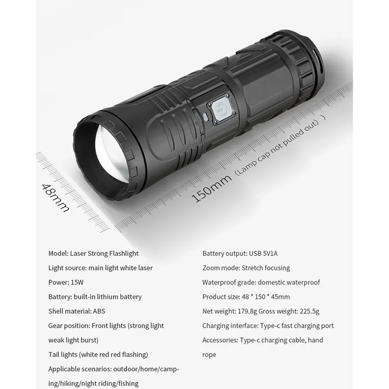 Torche BL-G601 BL-G600LED laser Lampe de poche , 15000lm, 7 modes, batterie externe, affichage extérieur, n’aime, torche d’urgence, lanterne de camping