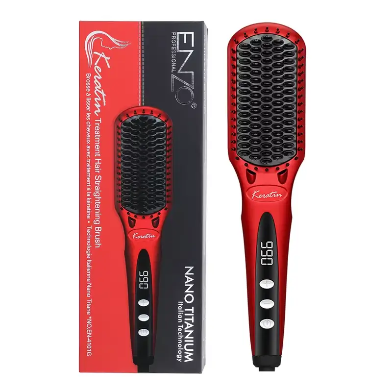 Brosse lissante ENZO EN-4101G, puissance 50 W, température réglable jusqu’à 985 °F, écran LCD, 24 niveaux de chaleur, technologie ionique, arrêt de sécurité automatique — idéale pour lisser rapidement les cheveux rebelles tout en protégeant la fibre capillaire.