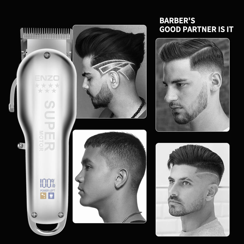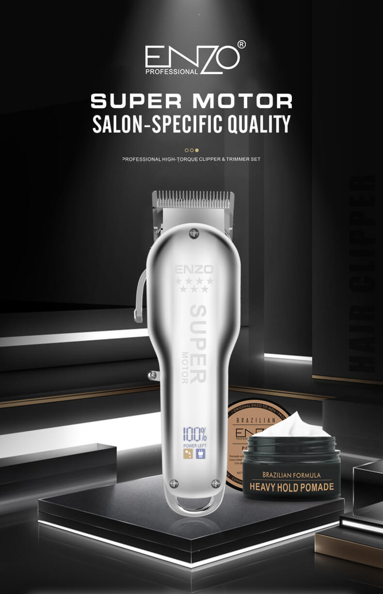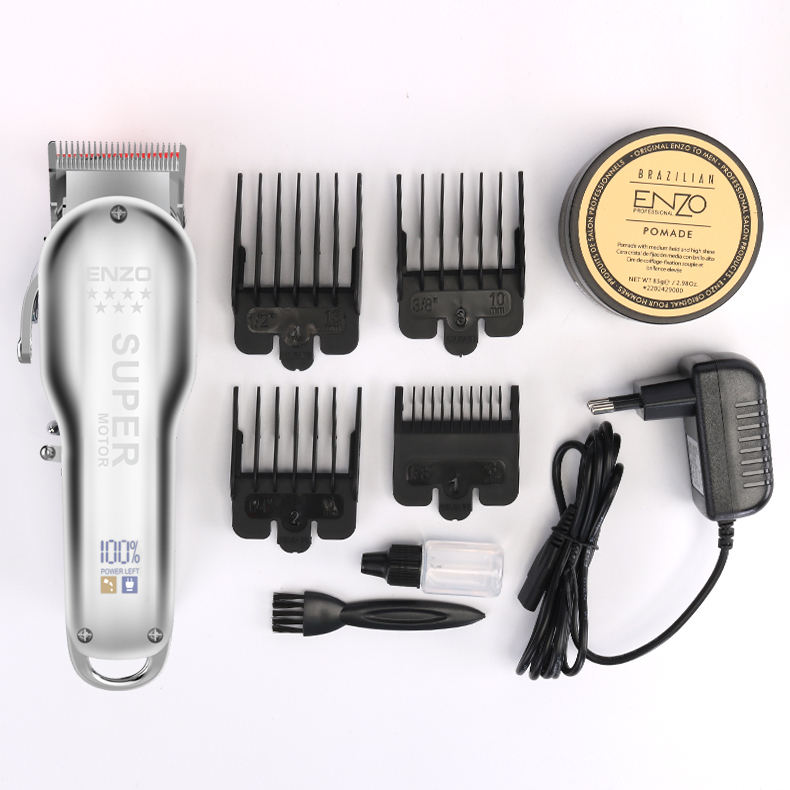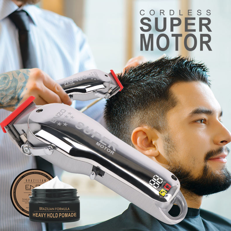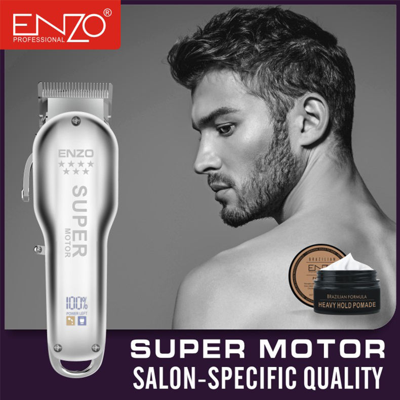 مجموعة قص الشعر بماكينة الحلاقة اللاسلكية المحترفة والقابلة لإعادة الشحن من ENZO بمحرك قوي