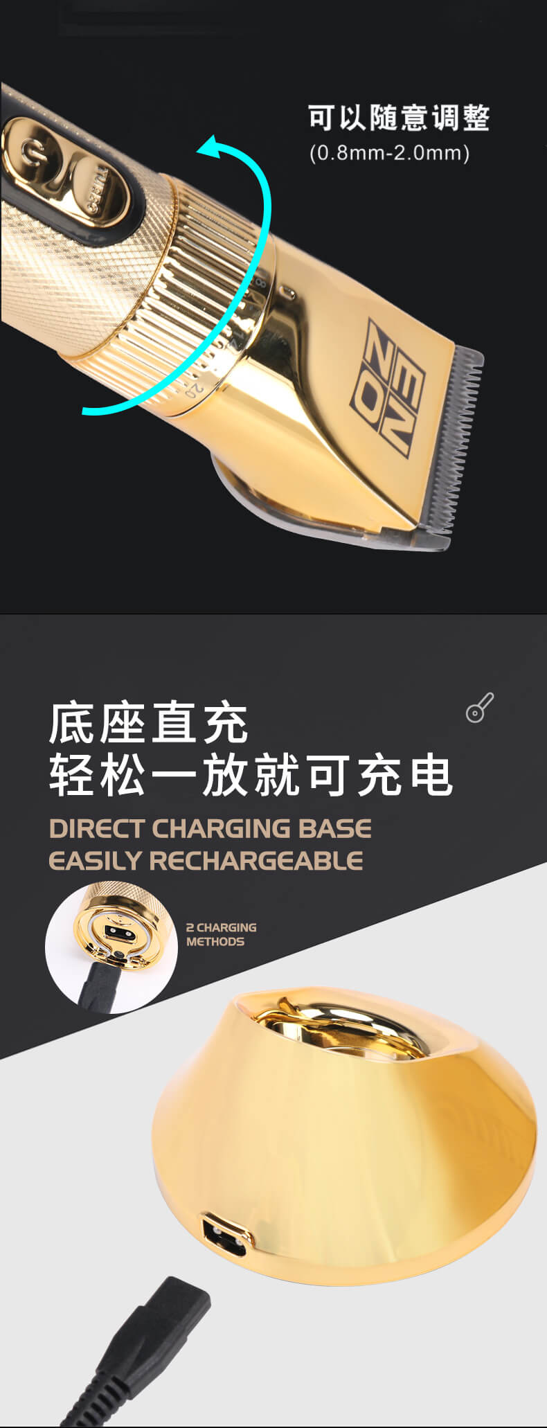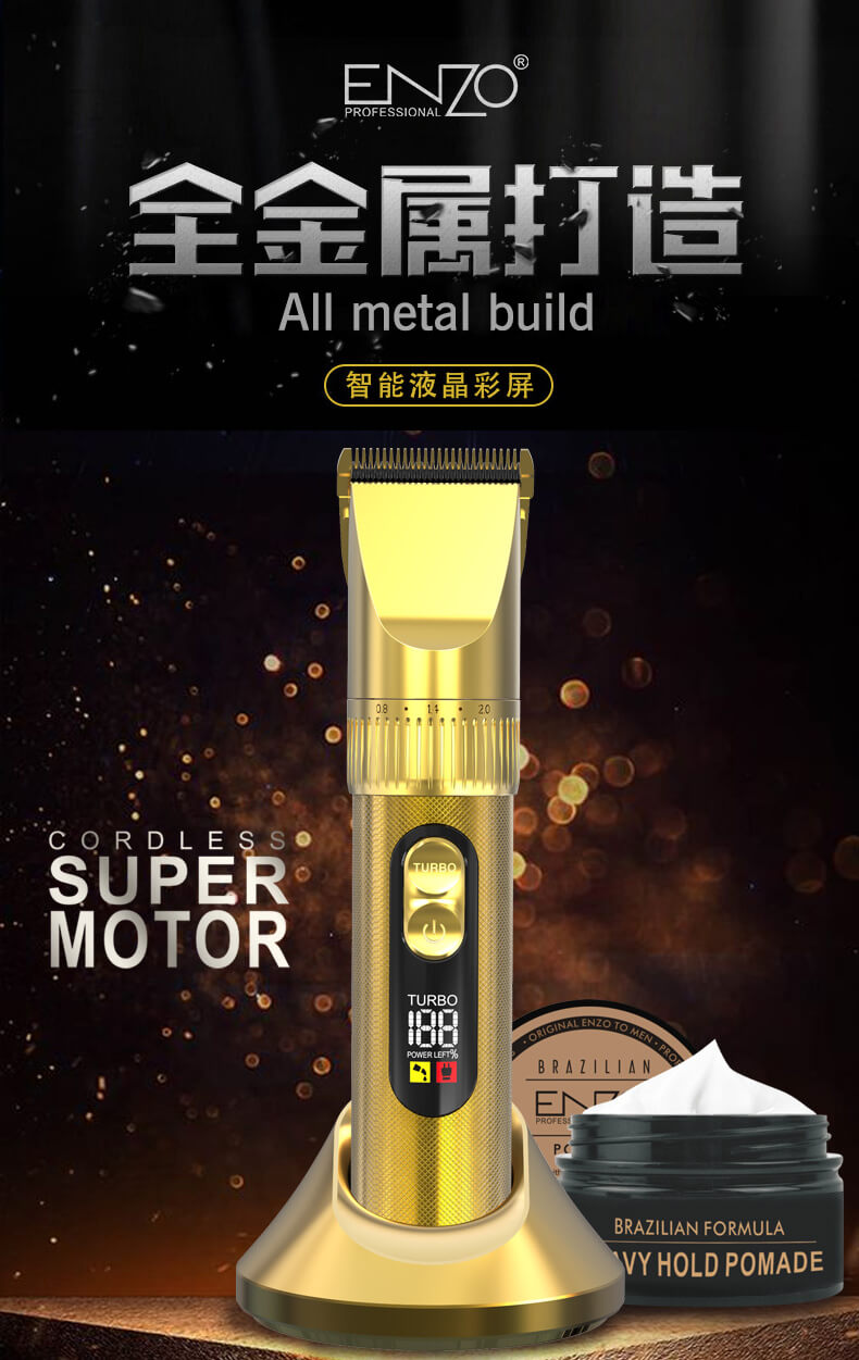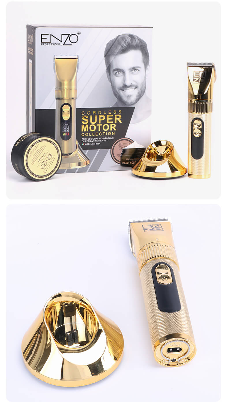 ENZO هي ماكينة قوية لقص الشعر الكهربائية مع قاعدة شحن. يمكن شحنها ويمكن تخصيصها بشعار OEM.