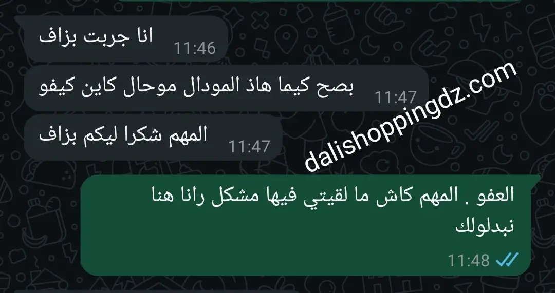 Après avoir passé votre commande, nous vous contacterons par téléphone pour confirmer les détails de celle-ci avec vous. Nous appelons généralement le client le jour même si la commande a été passée dans la matinée, ou le lendemain si la commande a été passée dans l'après-midi. Ensuite, nous expédions la commande via une société de livraison, afin qu'elle soit livrée à l'endroit que vous avez choisi, que ce soit à votre adresse ou si vous préférez la récupérer dans un bureau de la société de livraison disponible dans votre wilaya ou commune. Le délai de livraison varie entre un et deux jours, voire jusqu'à trois jours maximum selon les wilayas.