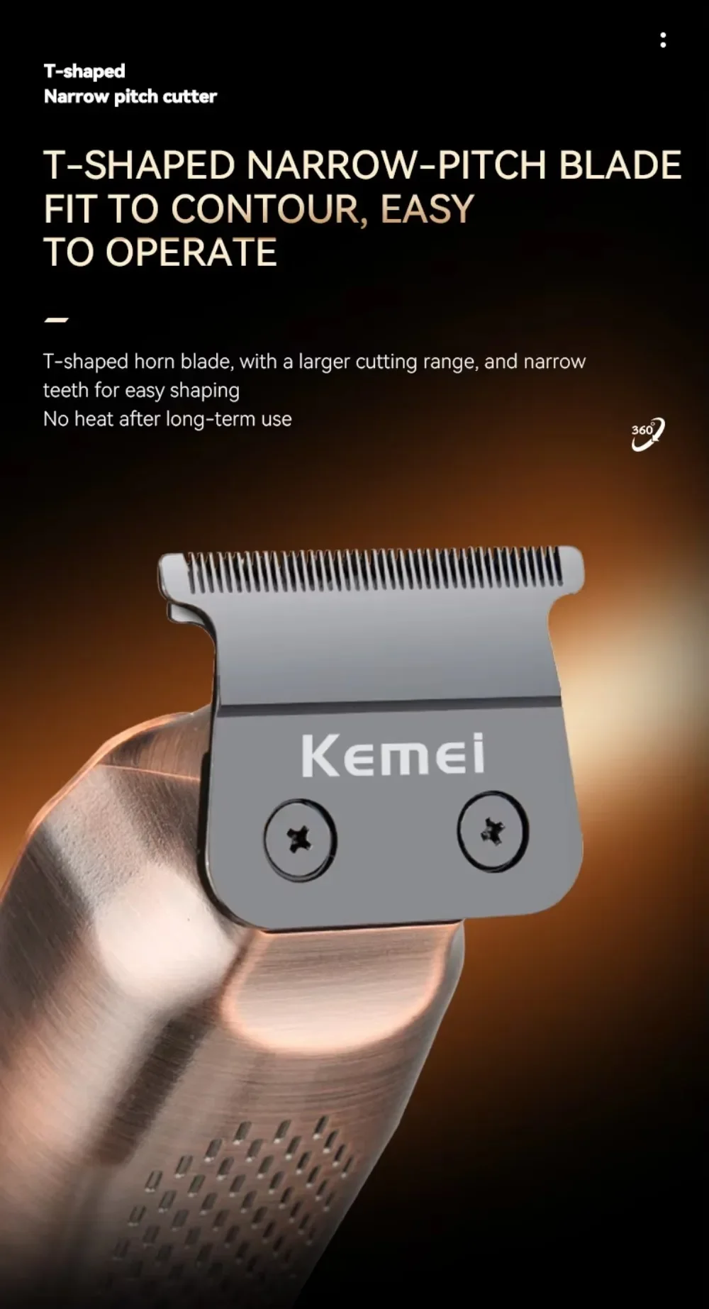 La Kemei KM-1576 est une tondeuse électrique professionnelle conçue pour offrir une performance de coupe supérieure. Dotée d’une lame en céramique de haute qualité, elle garantit une coupe précise et durable, idéale pour les professionnels comme pour les particuliers exigeants.