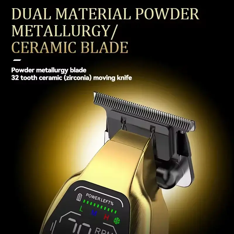 Cette tondeuse fonctionne sans fil grâce à sa batterie lithium de 1400 mAh, offrant une autonomie importante (selon sources, jusqu’à 2 à 3 heures) après une charge complète de ~2 heures. Elle propose trois vitesses : standard, rapide, turbo, permettant de s’adapter à la densité des cheveux ou au type de coupe souhaitée. L’écran LCD indique le niveau de batterie restant et parfois, selon variante, la vitesse ou le rappel d’entretien.