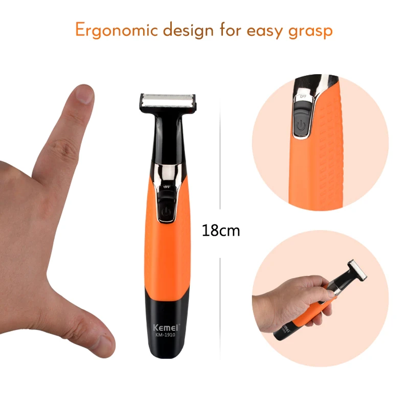 Kemei KM-1910 est un rasoir électrique rechargeable avec une batterie 600 mAh, doté de têtes flottantes triples et d’un design étanche pour un rasage confortable et sécurisé, même sous la douche.