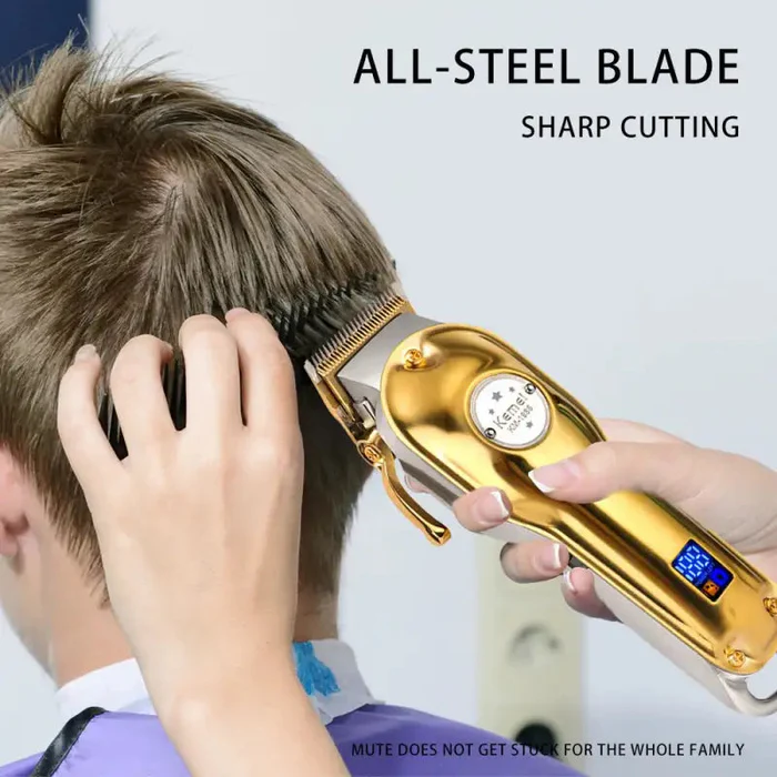 Kemei KM-1958 – Tondeuse professionnelle filaire, lames en acier inoxydable – gold doré