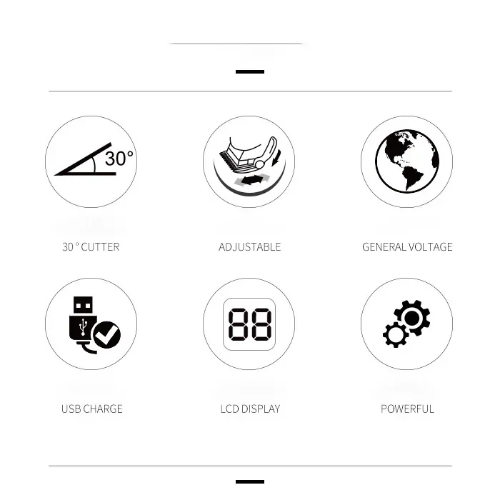 - Fonction: Humide coupe,Sèche cheveux,Charge rapide,Indication de charge