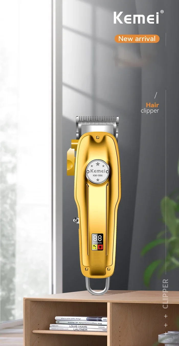 Kemei km-1986 -Tondeuse à cheveux professionnelle pour hommes, rasoir électrique sans fil, avec écran LCD, USB