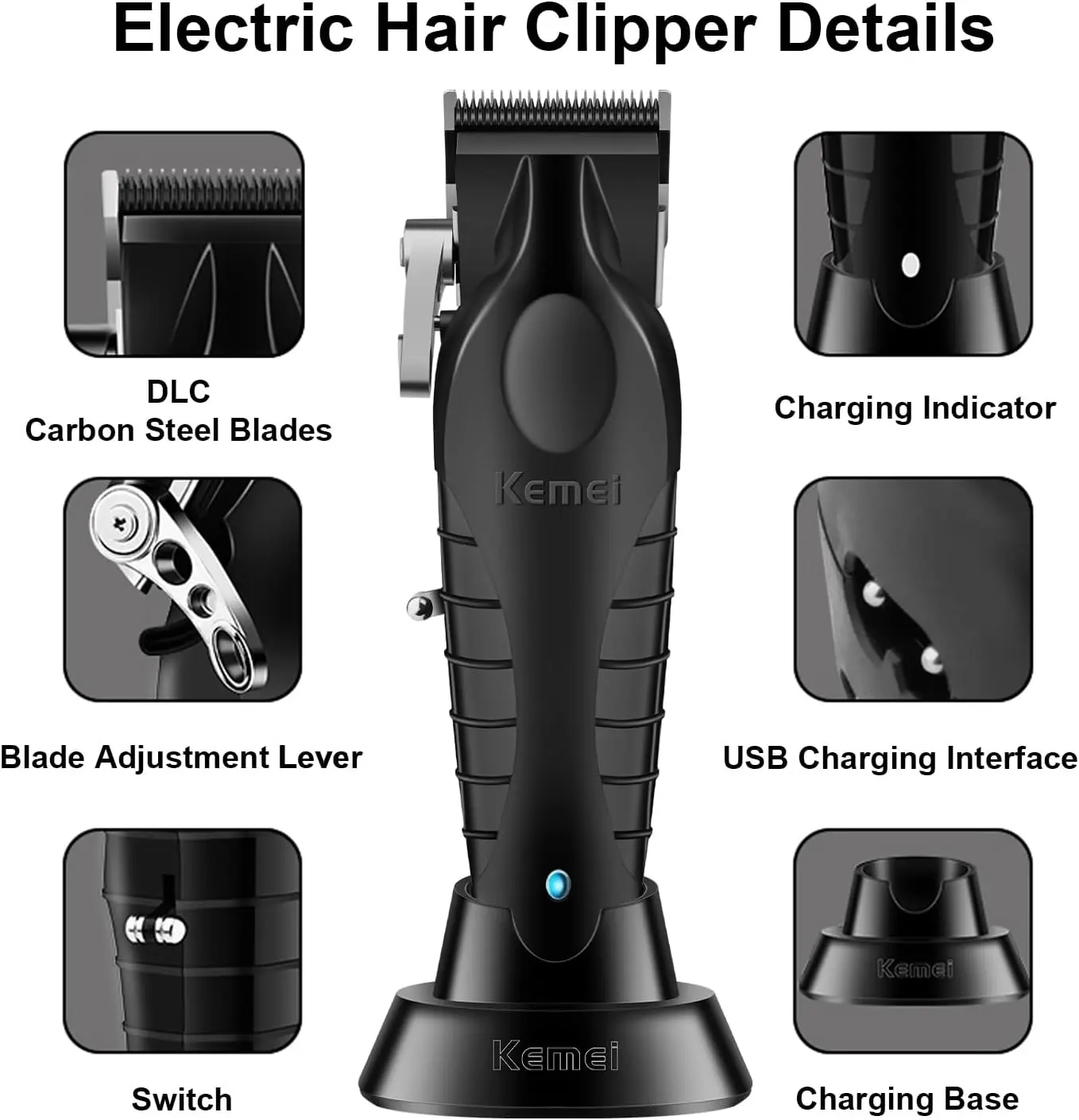 Kemei KM-2296 Tondeuse À Cheveux professionnel pour Hommes réglable noir