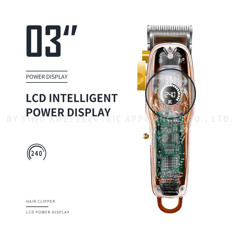 Kemei KM-2709PG Tondeuse professionnelle – Autonomie 3h, lames acier inoxydable, design transparent avec écran LCD