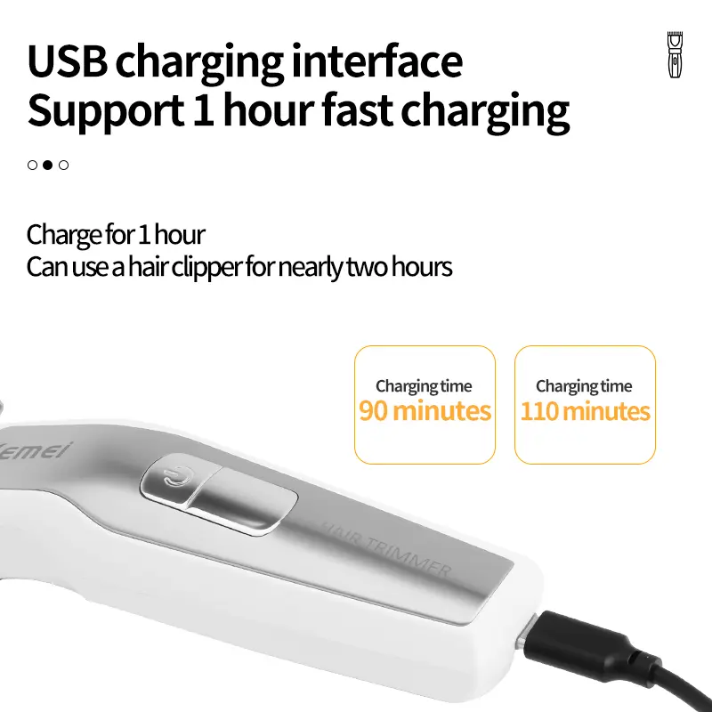 Sans fil ni prise, la Kemei KM-289 bouge partout avec vous pendant la tonte. Libre du cordon, chaque mouvement devient plus fluide, surtout en dessinant des lignes nettes, en affinant les bords ou en taillant vite chez soi. Pour ceux qui coupent leurs cheveux seuls, cela change tout. Même les apprentis coiffeurs ou les pros itinérants y trouvent leur compte : un outil souple, léger, toujours prêt.