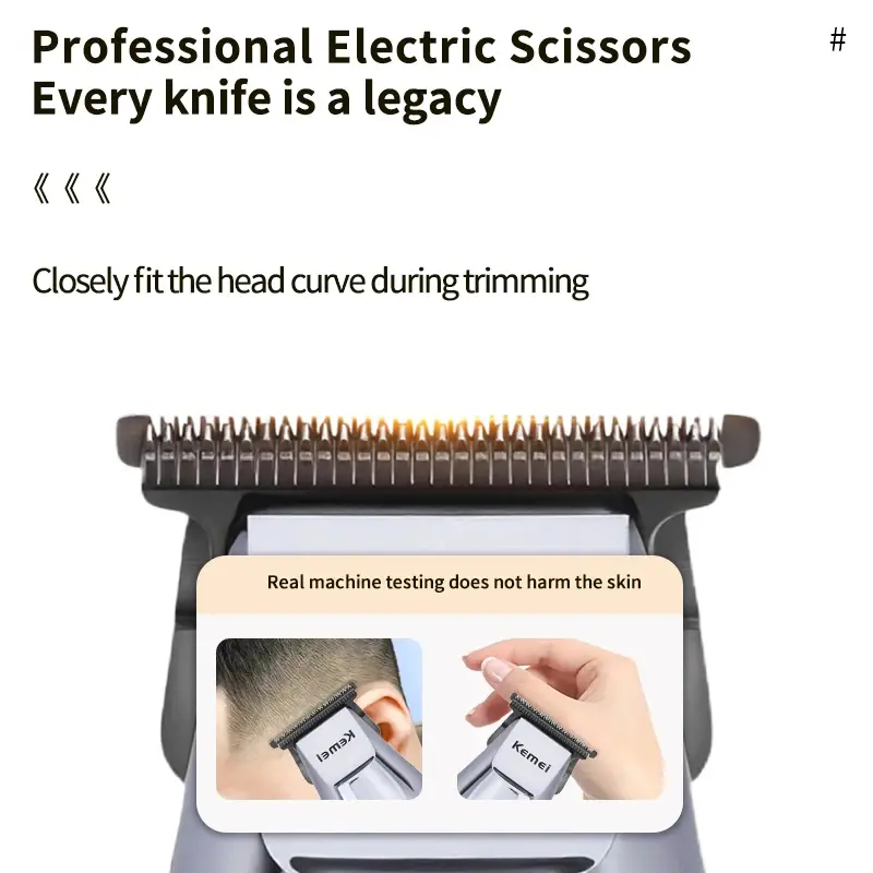 Parfois, la Kemei KM-5207 se montre utile quand on cherche un outil fiable. Grâce à sa batterie intégrée, elle fonctionne sans fil tout en gardant son énergie assez longtemps. Son usage s’adapte aussi bien chez soi qu’en déplacement pour entretenir poils ou cheveux. Un moteur rapide, proche de 7200 rotations chaque minute, lui donne du souffle dans les moments serrés. Même avec des textures denses, il ne ralentit pas trop. Elle tranche droit, presque sans trembler, peu importe si c’est fin ou dru. Quand le travail demande précision, l’appareil suit sans broncher.