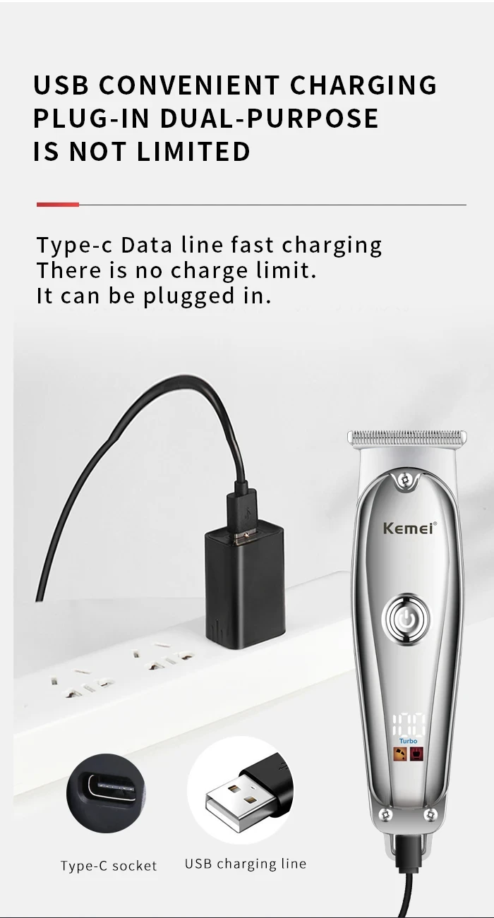 Kemei KM-2293 Tondeuse À Cheveux Électrique Professionnel Rechargeable Sans Fil Type-c