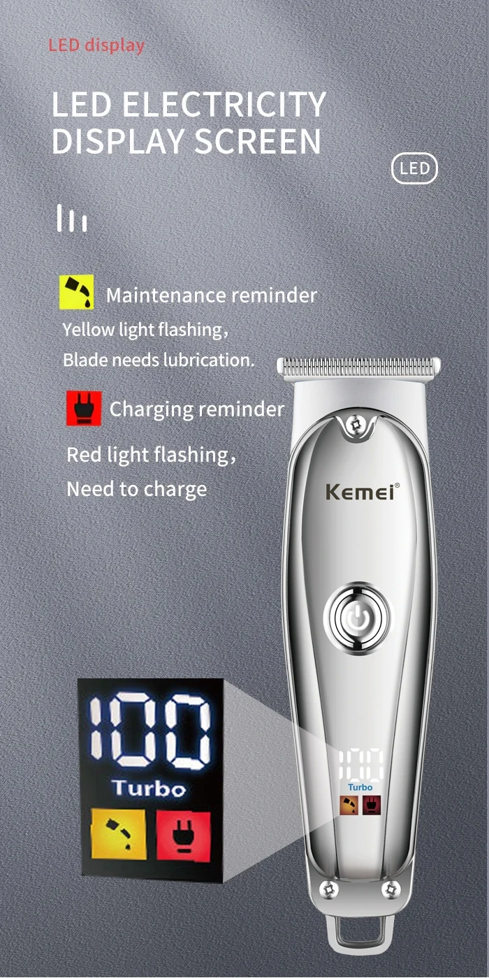 Kemei KM-1948 – Tondeuse cheveux & barbe en métal avec écran LCD
