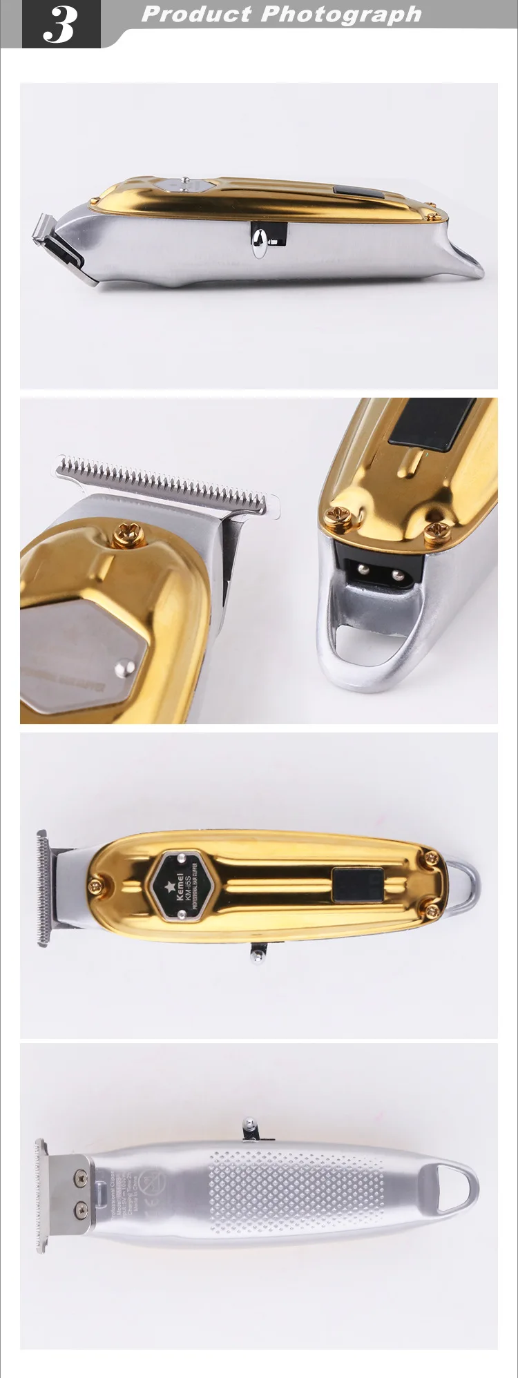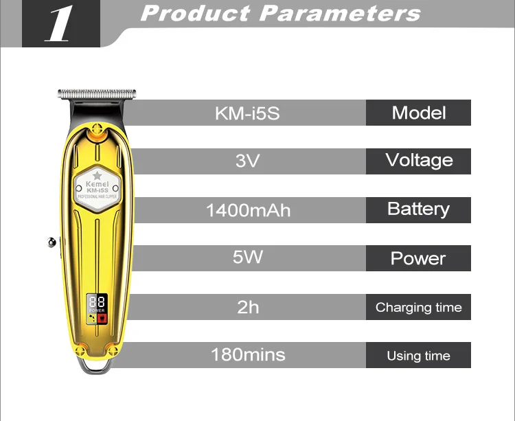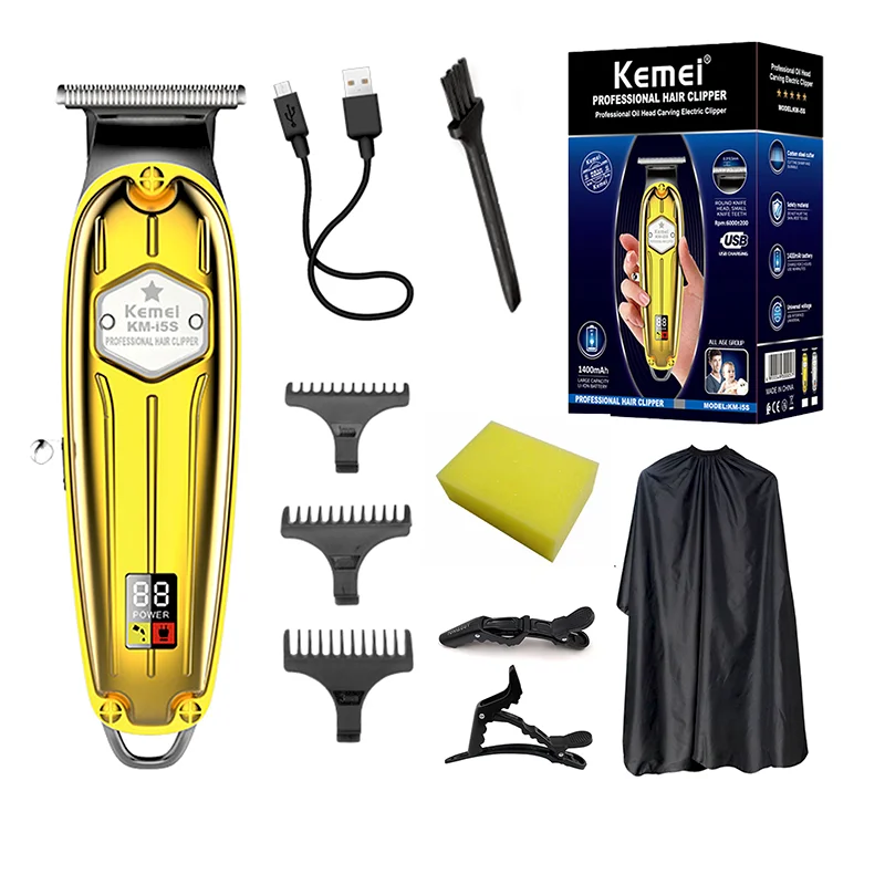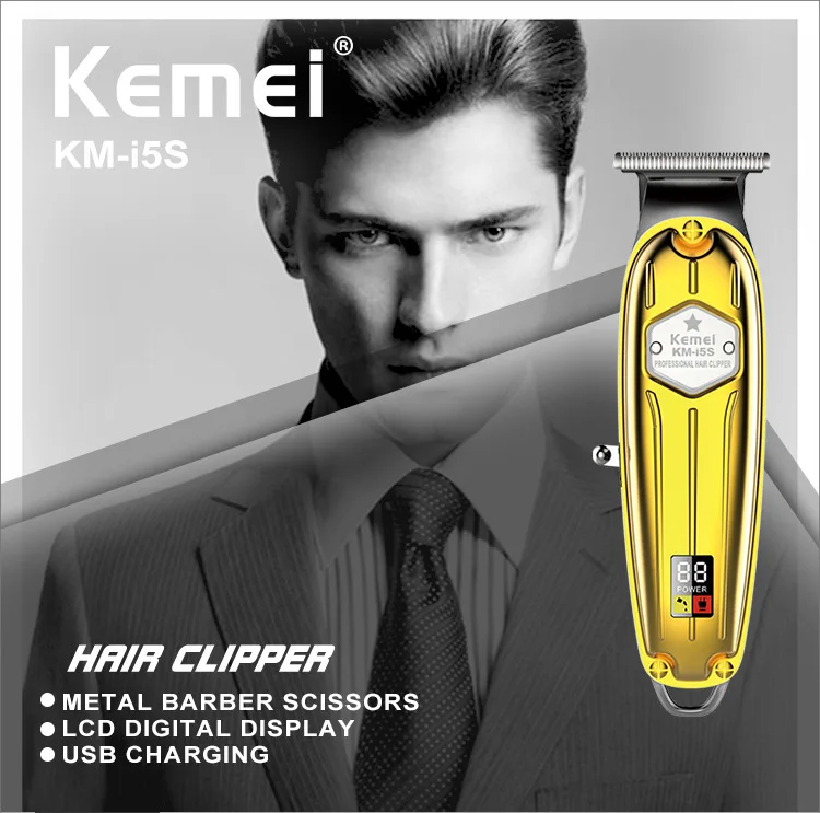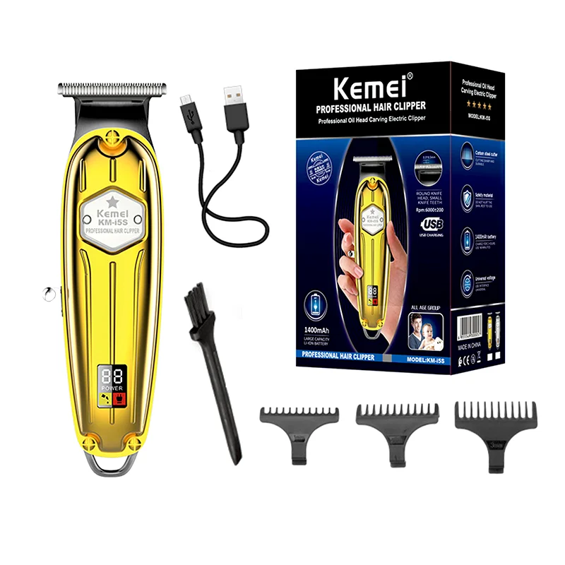 Kemei KM-i5S corps en métal tondeuse doré gold affichage de puissance LED USB Rechargeable