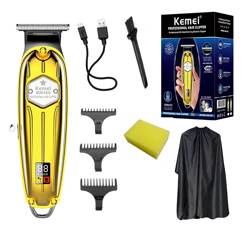 Kemei KM-i5S corps en métal tondeuse doré gold affichage de puissance LED USB Rechargeable