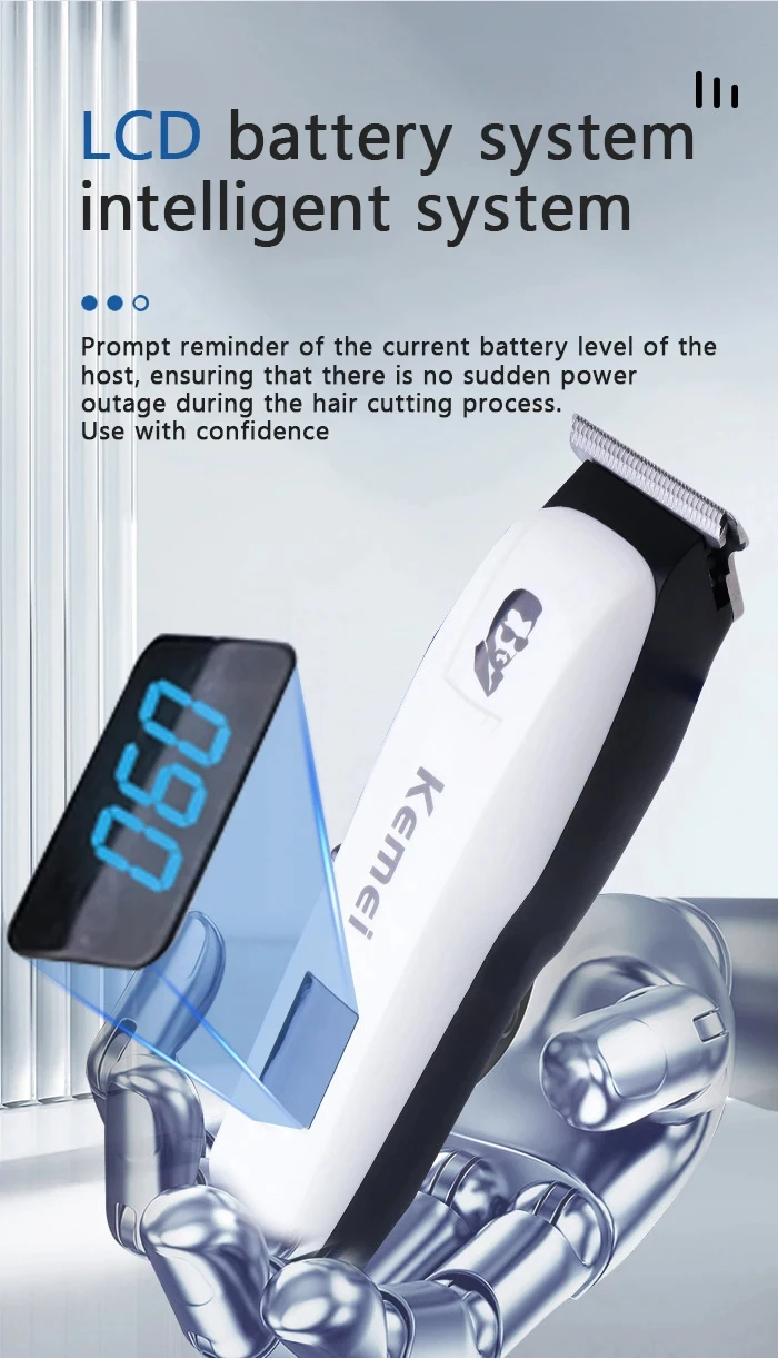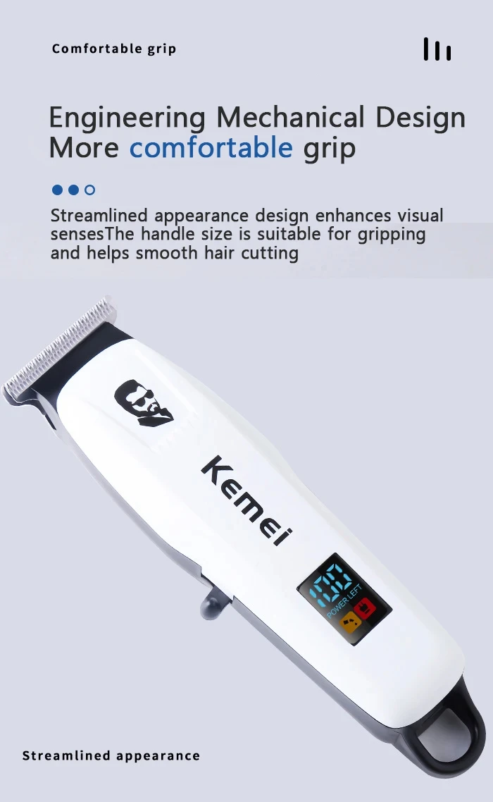 Kemei KM-PG232 tondeuse à cheveux électrique tondeuse sans fil pour hommes rasoir Rechargeable LCD blanche
