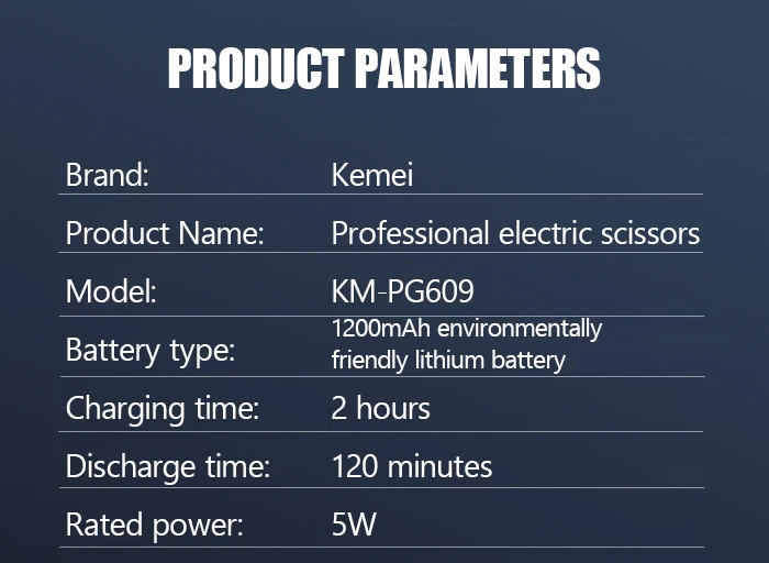 kemei KM-PG609 -Tondeuse à Cheveux 8W – 1200 mah