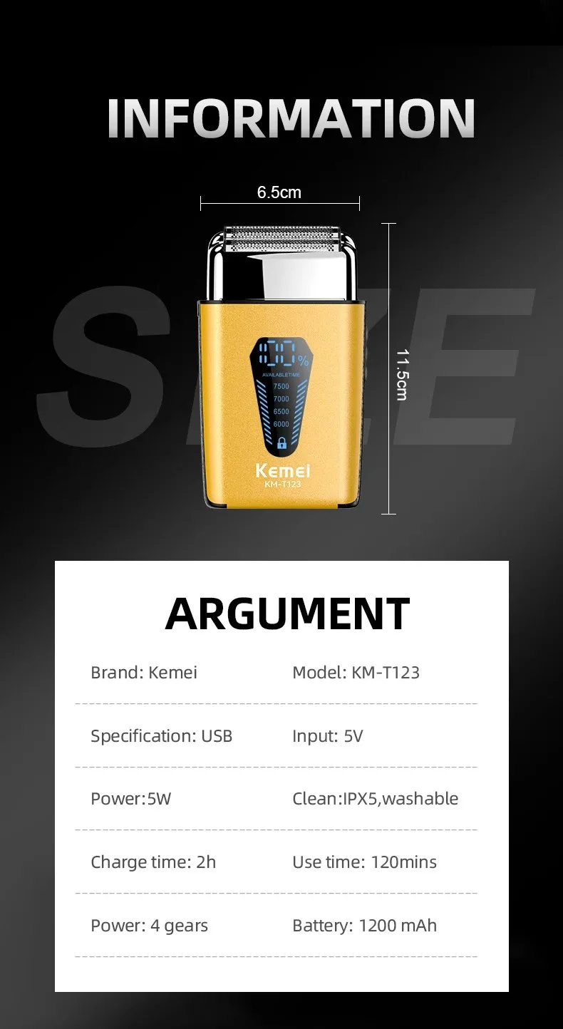 ★Batterie haute capacité :Le KM-T123 est livré avec une batterie haute capacité qui offre un temps de rasage prolongé avec une seule charge, minimisant ainsi le besoin de recharges fréquentes.