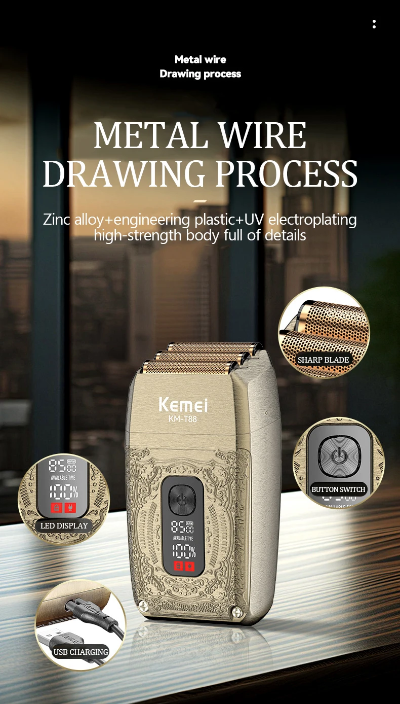 Kemei KM-TX1 – rasoir électrique pour hommes, entièrement en métal, Original,