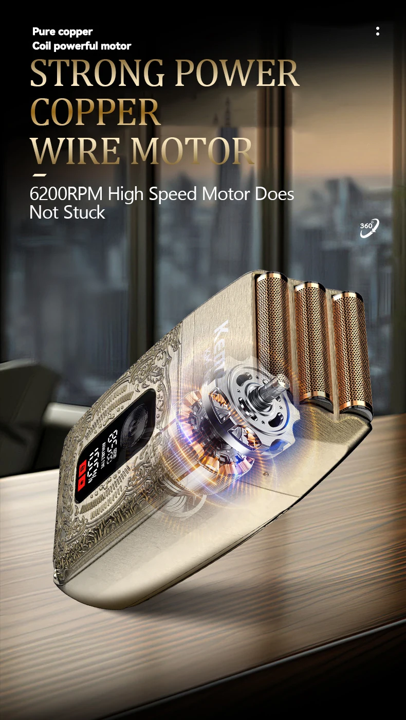 4k -Rasoir électrique LK-2010 tout en métal , avec afficheur numérique, étanche, doré gold