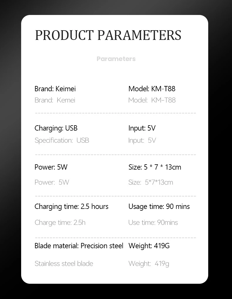 - Kemei Modèle: K-T88