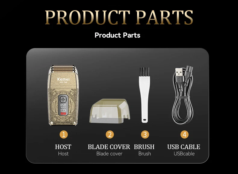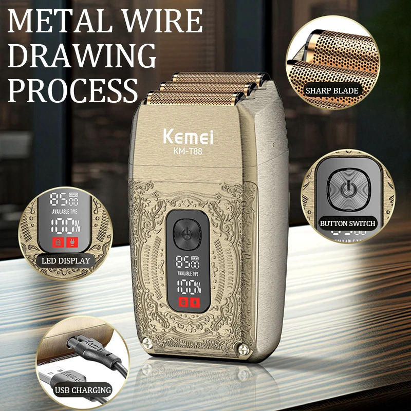 Kemei KM-T88 Rasoirs Électriques triple tête USB charge – gold