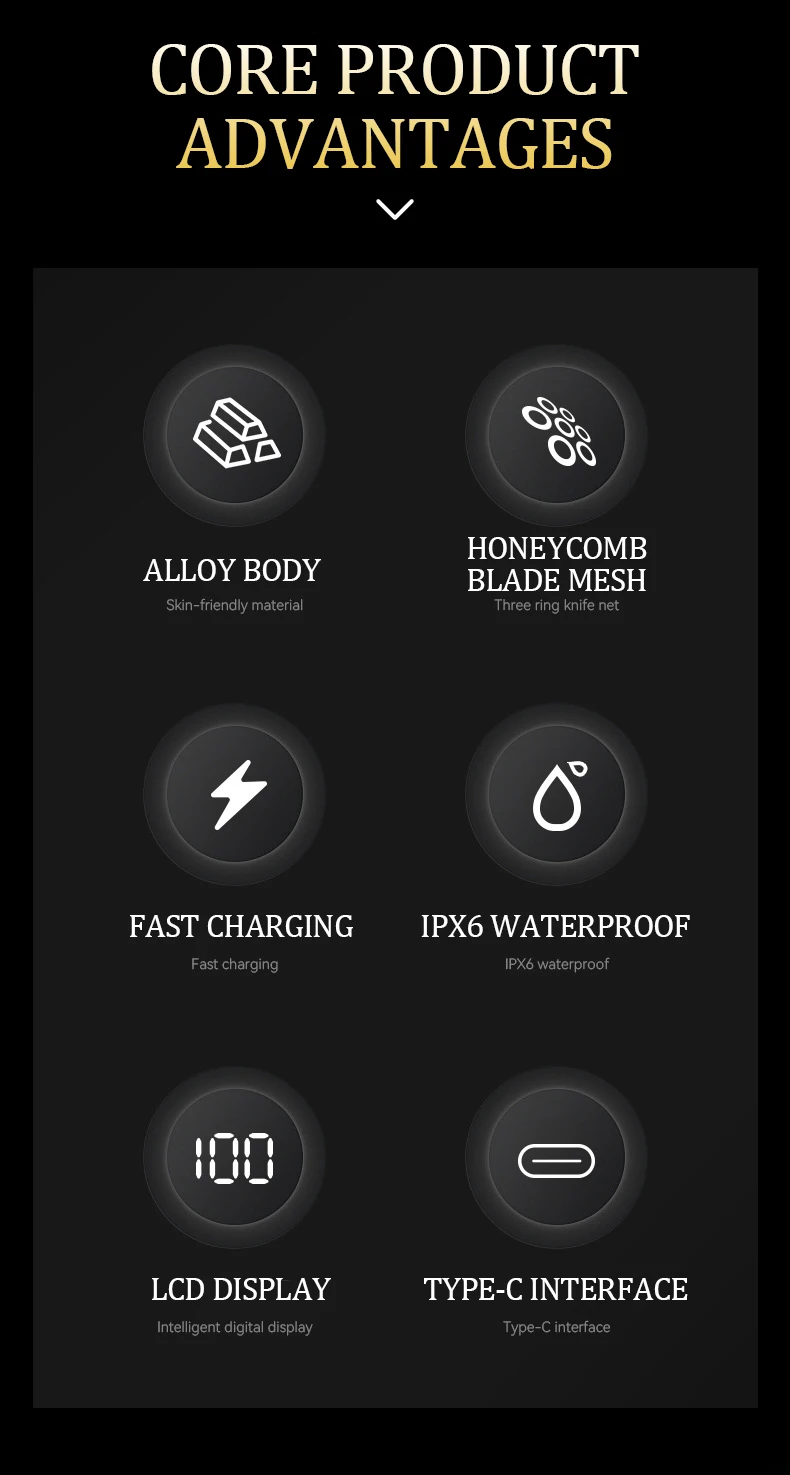 4k -Rasoir électrique LK-2010 tout en métal , avec afficheur numérique, étanche, doré gold