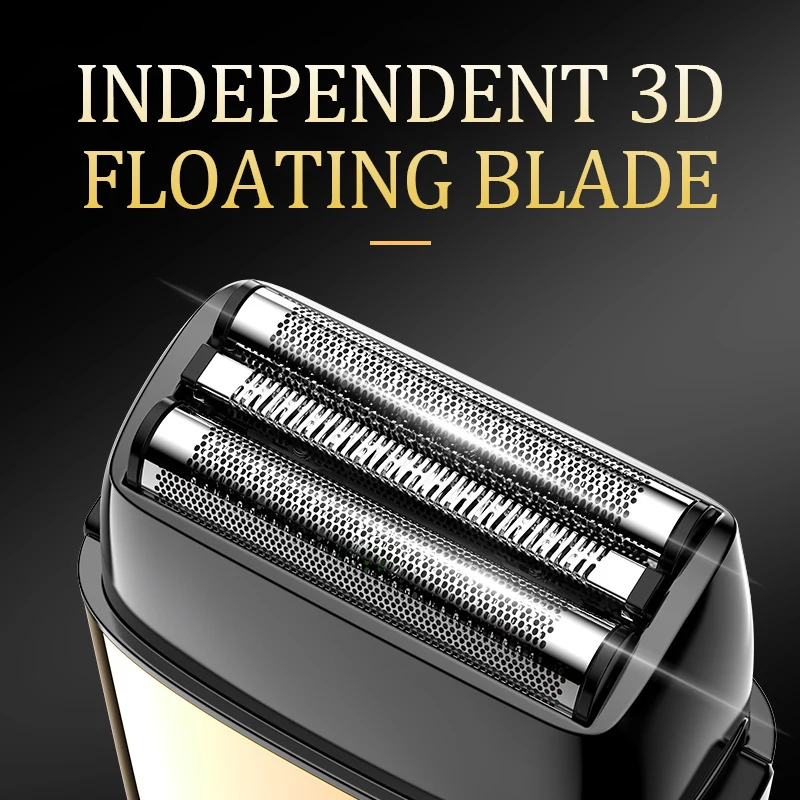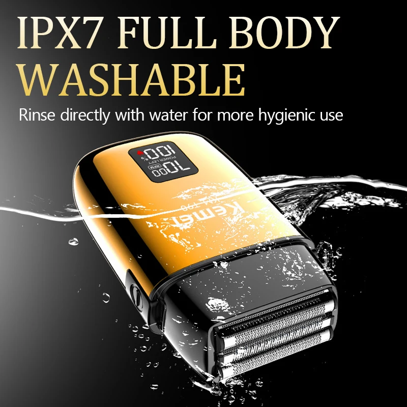 KEMEI KM-T90 rasoir électrique à 3 lames à tête flottante avec écran LCD et USB étanche gold doré