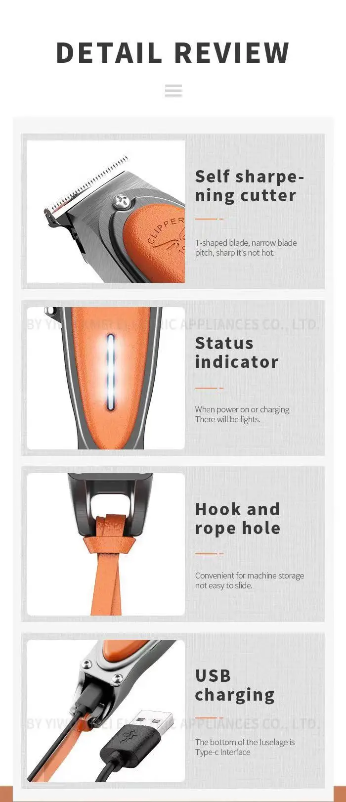 Kemei KM1946 ماكينة قص الشعر الكهربائية من الجلد بمنفذ USB للرجال مع 4 أمشاط لتشذيب الشعر بدقة طوندوز كيمي