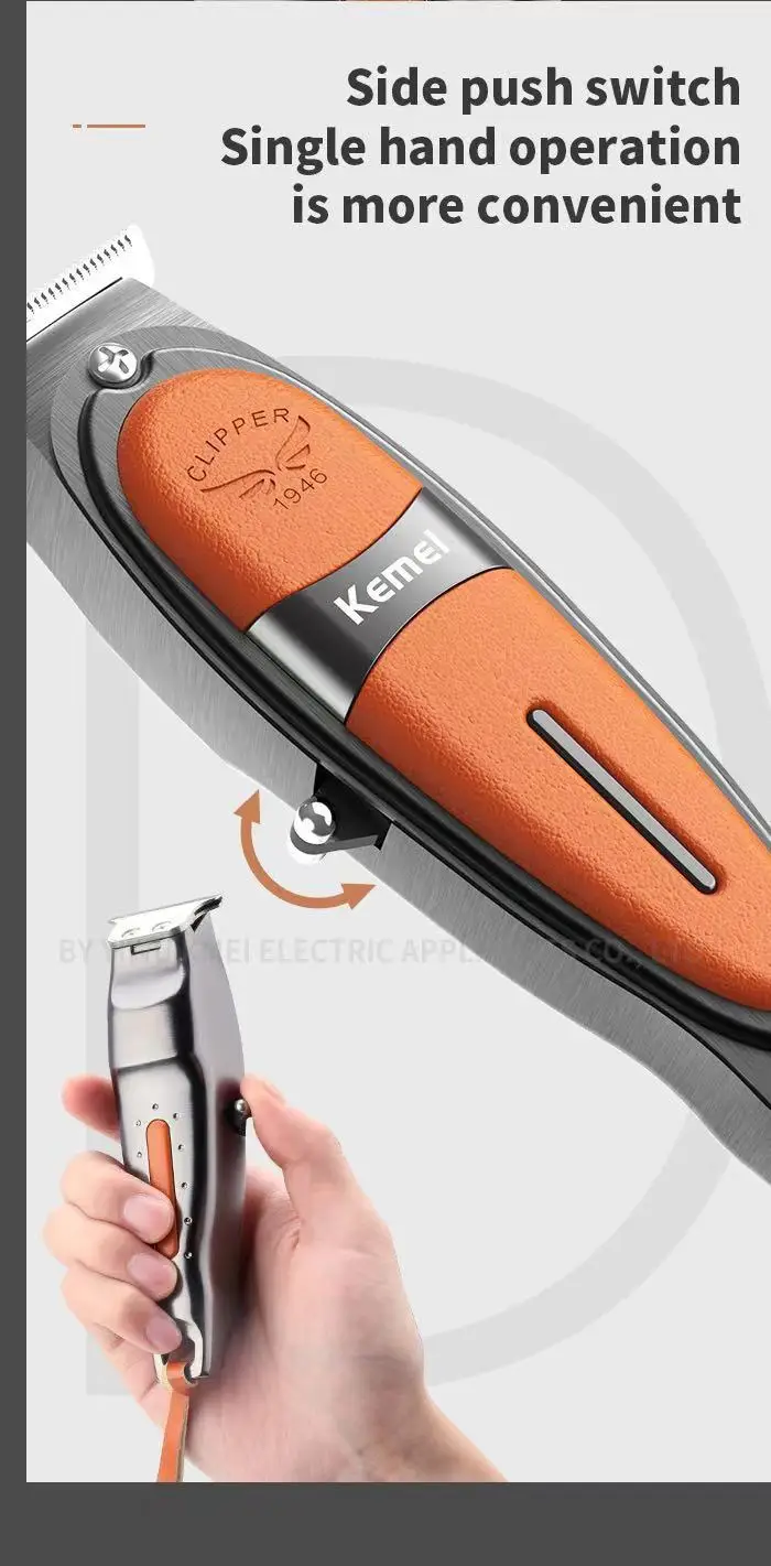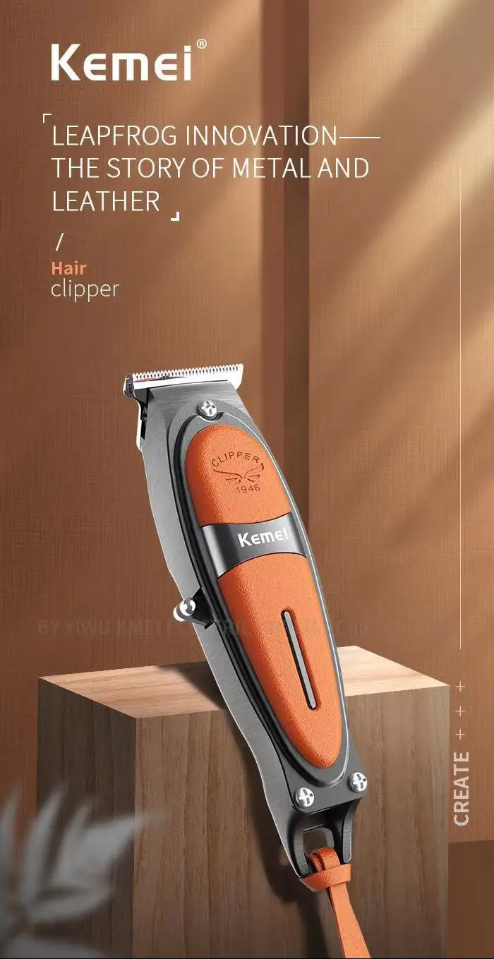 Kemei KM-1946/KM-1945 ماكينة قص الشعر الكهربائية من الجلد بمنفذ USB للرجال مع 4 أمشاط لتشذيب الشعر بدقة طوندوز كيمي