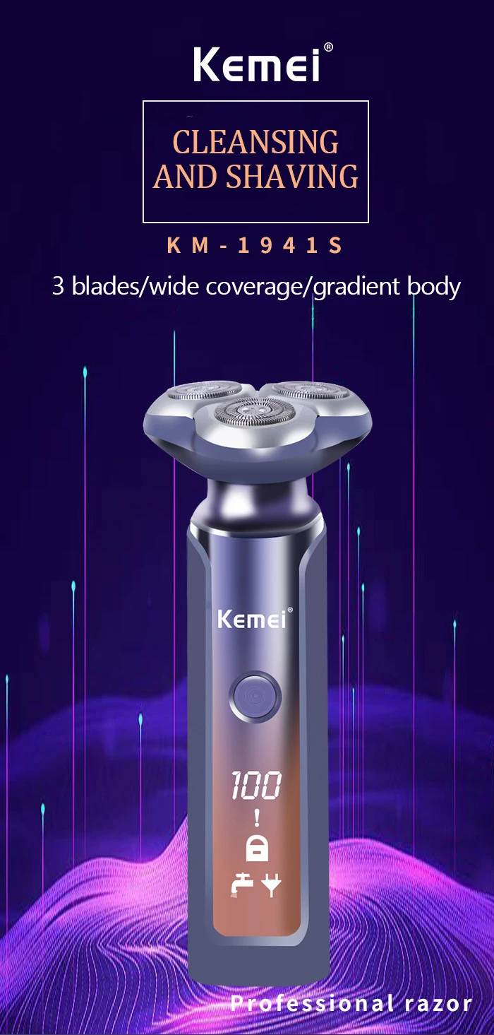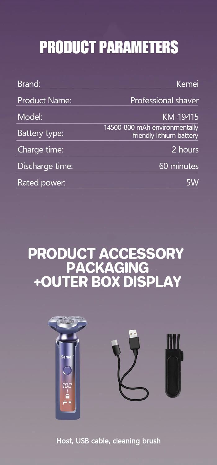 Kemei-Rasoir électrique sans fil pour hommes, support aste, KM-1941s