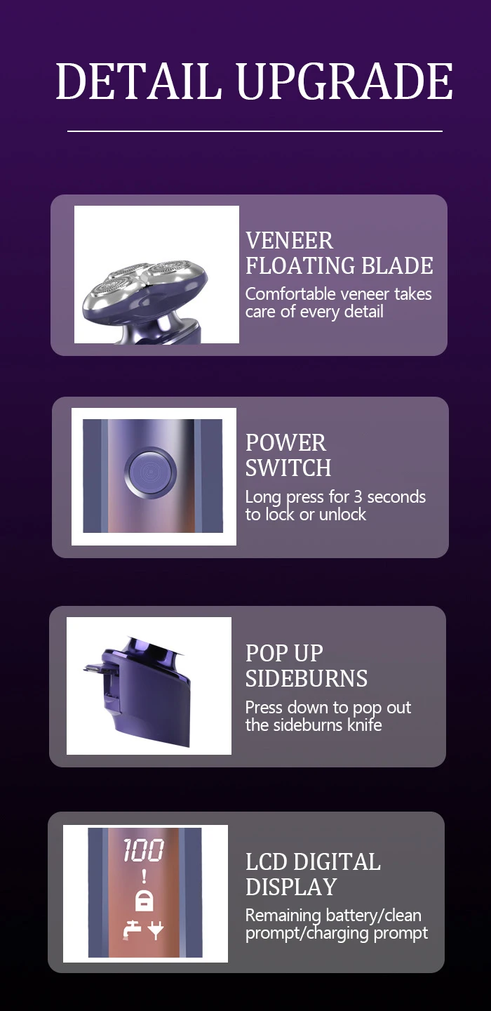 4k -Rasoir électrique LK-2010 tout en métal , avec afficheur numérique, étanche, doré gold