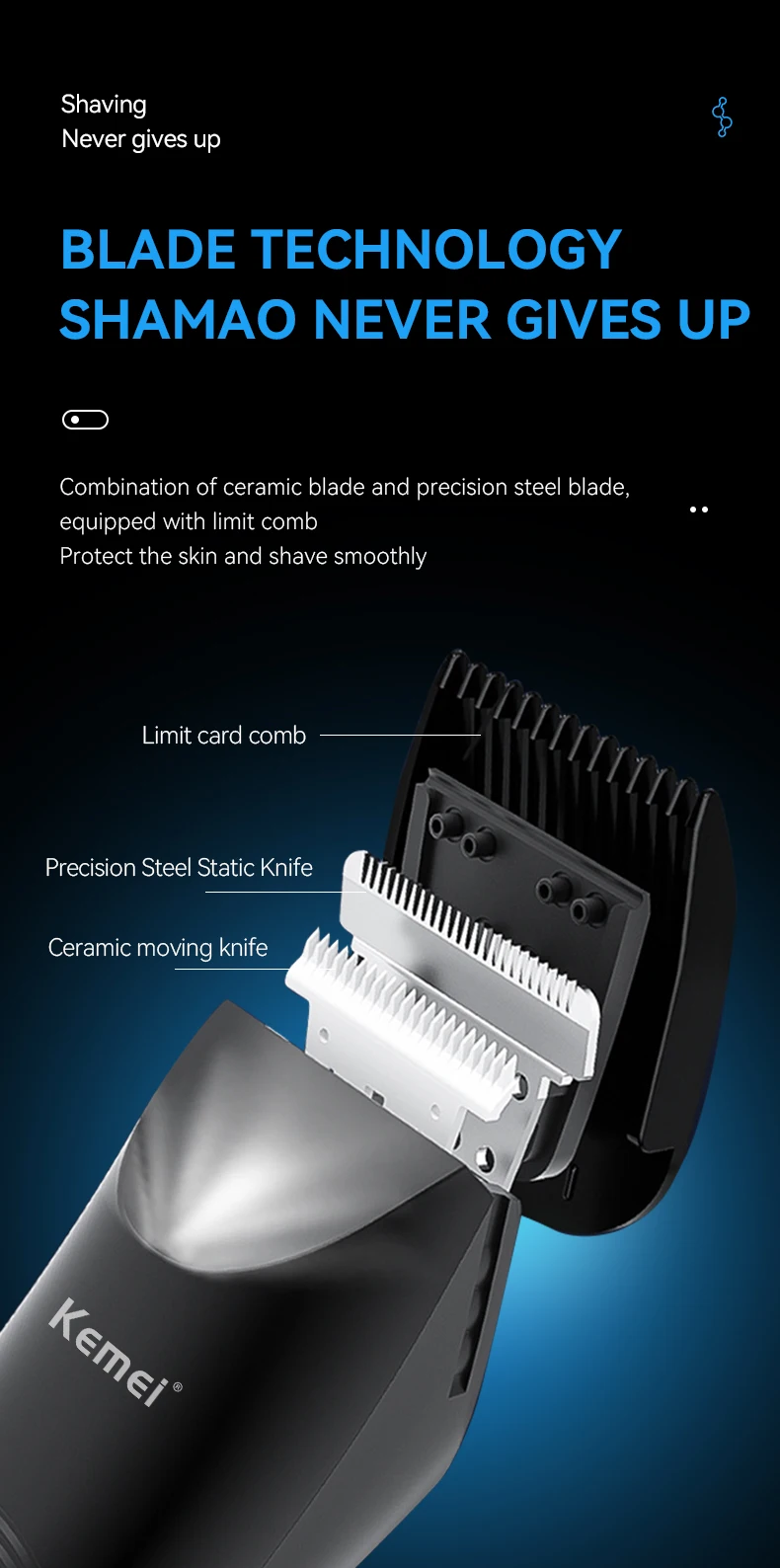 Kemei Tondeuse Professionnel Zone Sensible & Corps kemei KM-1840