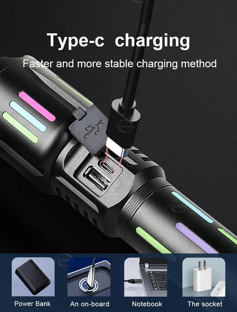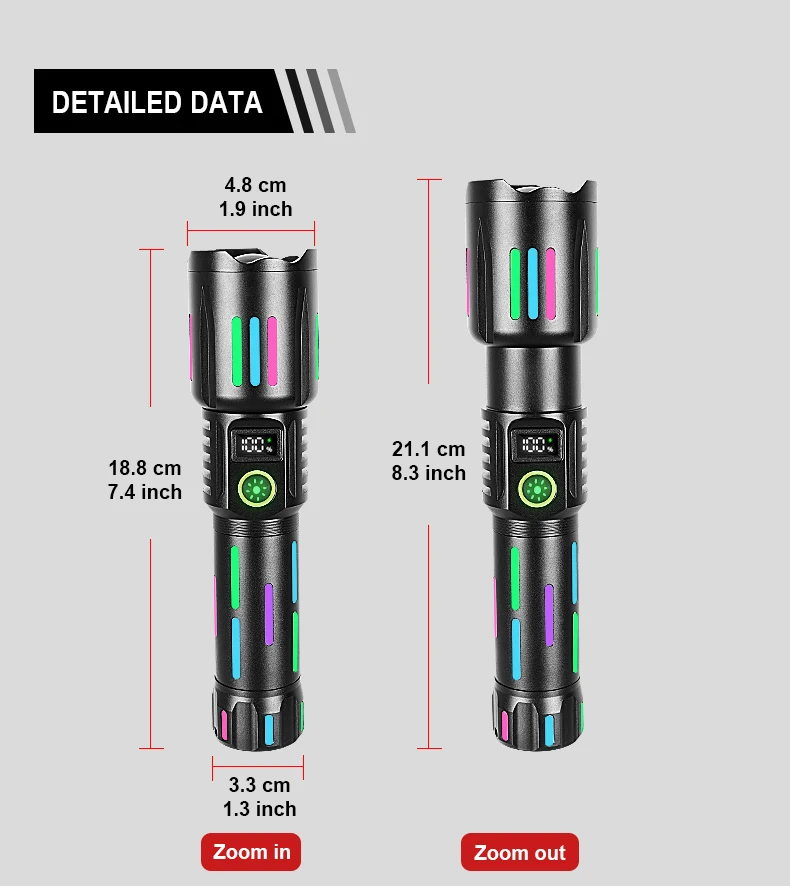 Équipée d’une batterie haute capacité 26650, la KEZU KH-W515 garantit une longue autonomie, vous évitant ainsi les recharges fréquentes. Sa fonction de zoom extensible vous permet d’ajuster précisément la mise au point du faisceau lumineux pour s’adapter à vos besoins spécifiques, que ce soit pour un éclairage de proximité ou une portée plus longue. Avec ses multiples modes d’éclairage, cette lampe de poche est un choix idéal pour des activités variées, comme le camping, les randonnées ou les situations d’urgence.