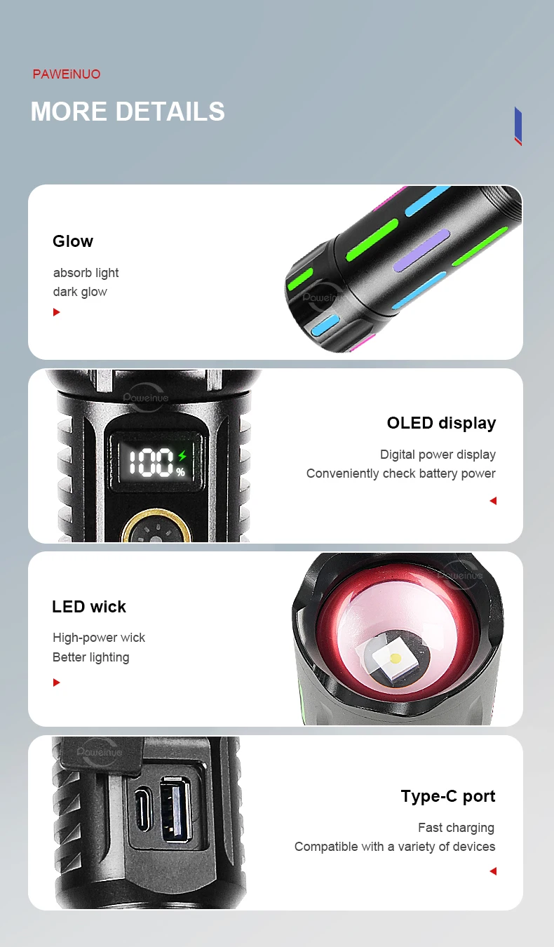 - Batterie : 26650 (grande capacité, longue durée de fonctionnement)