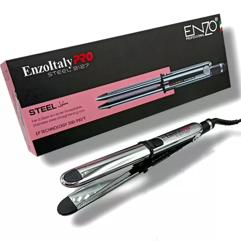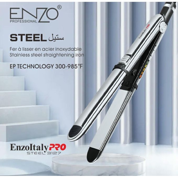 Lisseur professionnel ENZO PRO Steel EN-3127 – 985°F Technologie EP et Ionic chromé En acier inoxydable