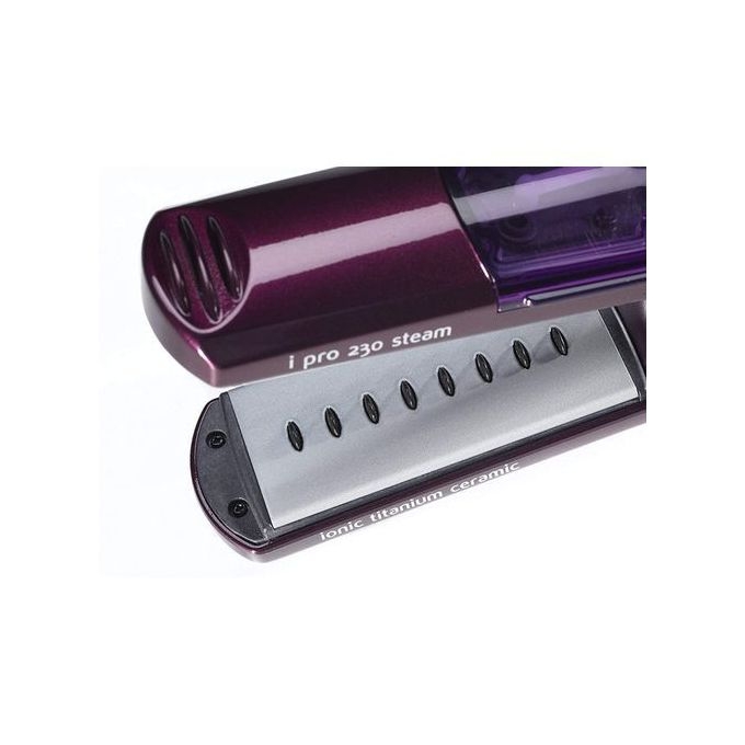 Fonction vapeur : hydrate et détend la fibre capillaire (2 niveaux d’intensité).5 réglages de température selon la nature du cheveu/temp 230°c : lissage en 1 seul passage.I-température technologie : chauffe instantanée et répartition homogène de la température.Idéal pour les cheveux mi- longs et longs : plaques de 38x85mm.Revêtement titanium céramique : résistant, doux.peigne démêlant rétractable : facilite le lissage.Ecran LED : indication précise de la température.Pochette thermorésistante : sécurité et protection.