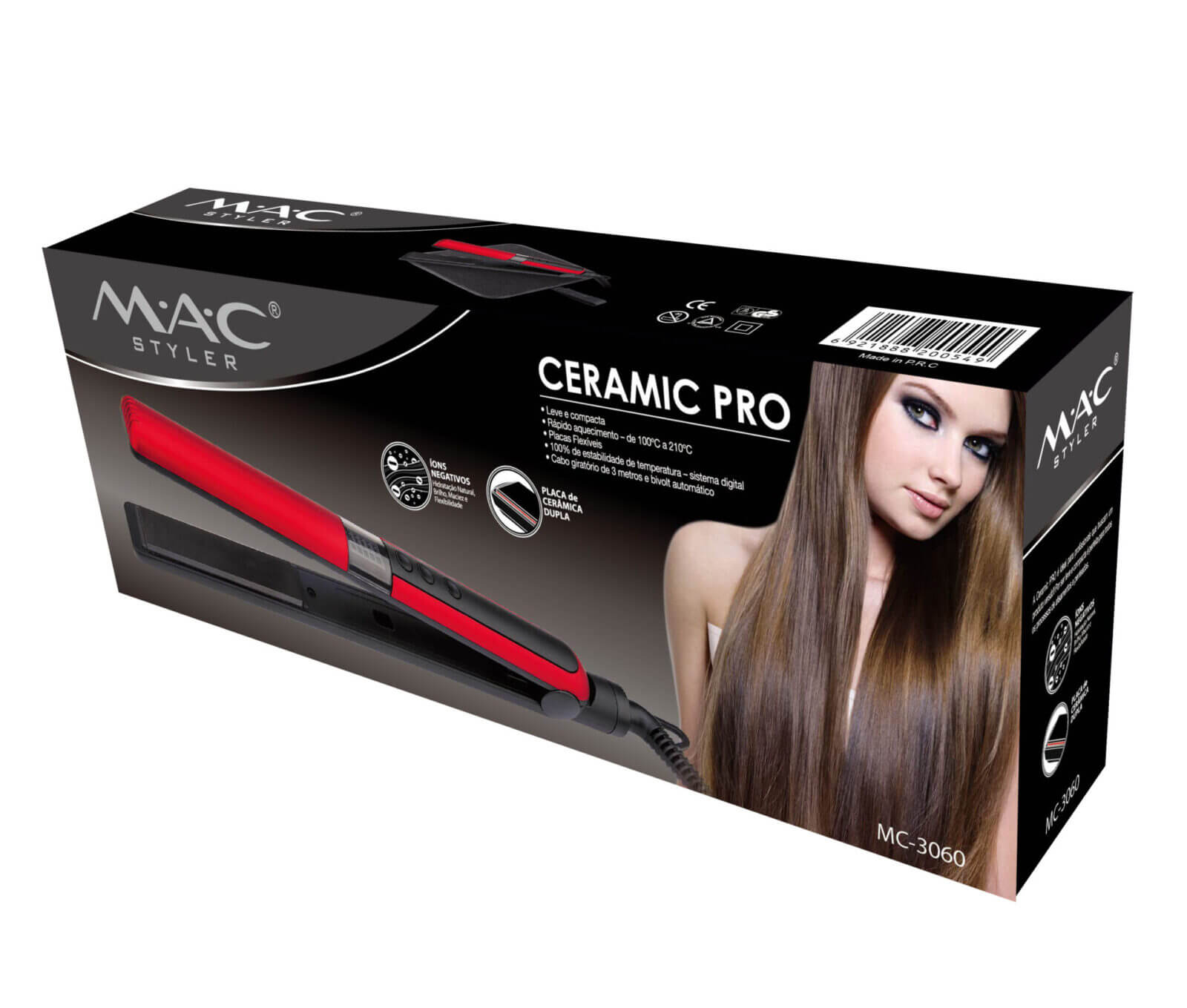 mac mc-3060 algérie, fer à lisser céramique 230 °C, lisseur tourmaline algérie, fer à lisser MAC Styler, lissage cheveux épais, lisseur professionnel plat.