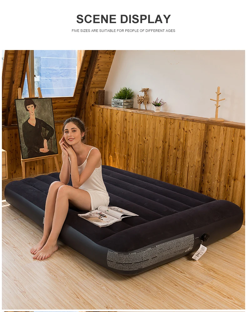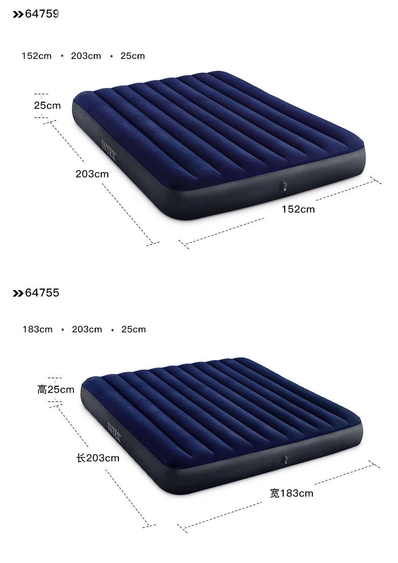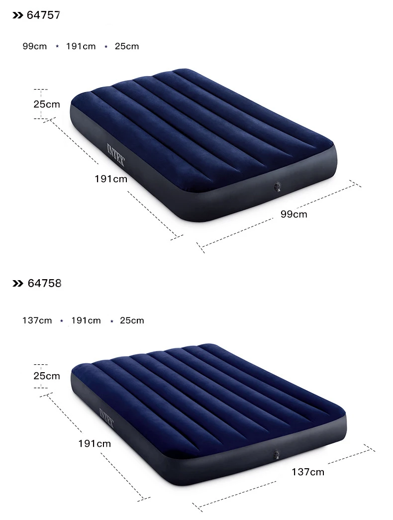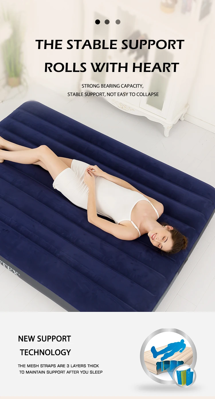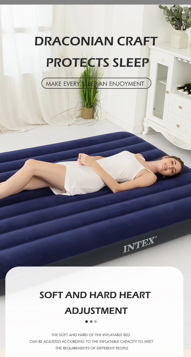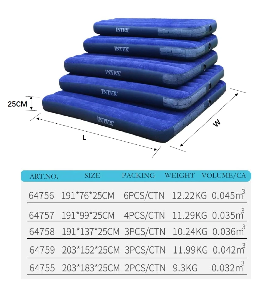 Matelas gonflable intex avec pompe à main, lit pneumatique classique Queen, camping, 64765