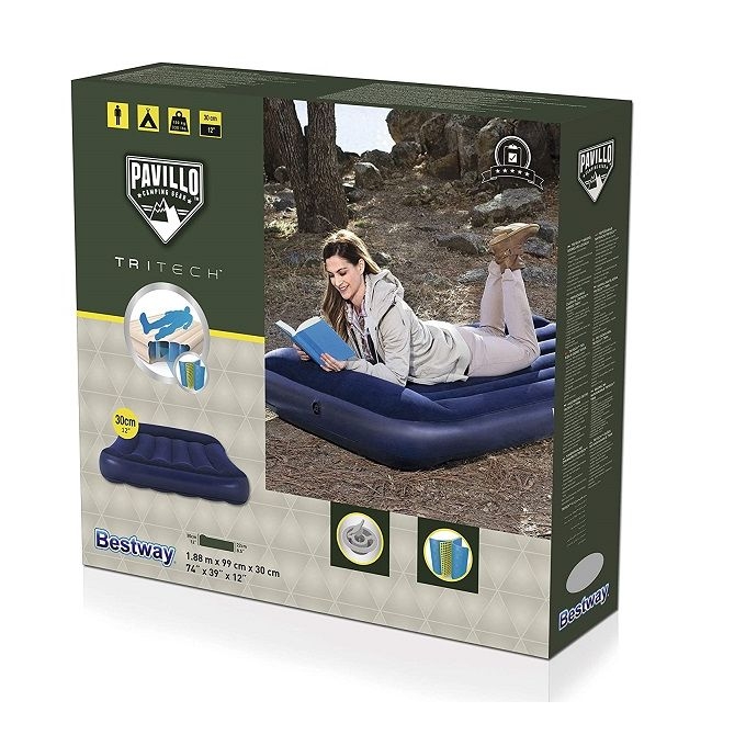 Matelas Gonflable Pavillo . Dimensions : 188 x 99 x 30 cmPour une utilisation en intérieur et en extérieurMatériau TriTech robusteSurface de couchage floquée confortableContenu : 1 matelas gonflable, 1 rustine