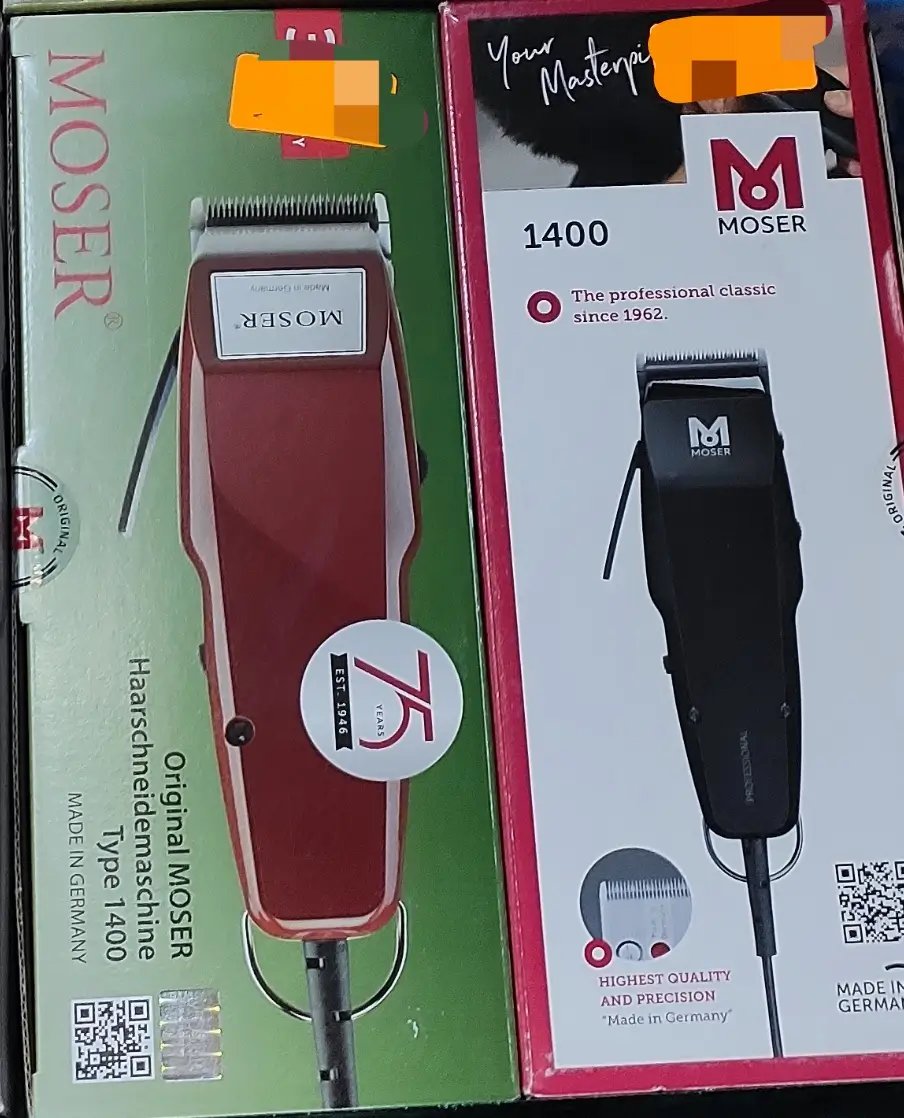 Tondeuse À Cheveux MOSER 1400 Professional StarBladeLargeur de coupe : 46 mm Réglage de la longueur de coupe MultiClick® avec 5 positions verrouillables : de 0,1 à 3 mm Nouveau moteur puissant et silencieux, à armature oscillante d’une puissance supérieure de 50% Tension : 220-230 V / 50 Hz Utilisation professionnelle continue Longueur de câble : 3 m Dimensions : 175 x 69 x 50 mm Poids : 520 g