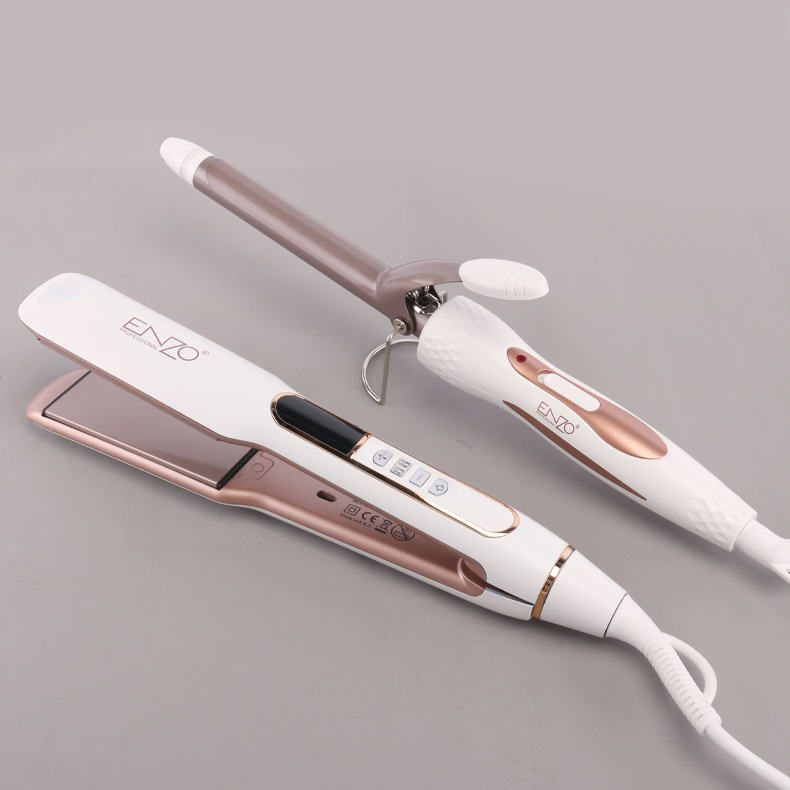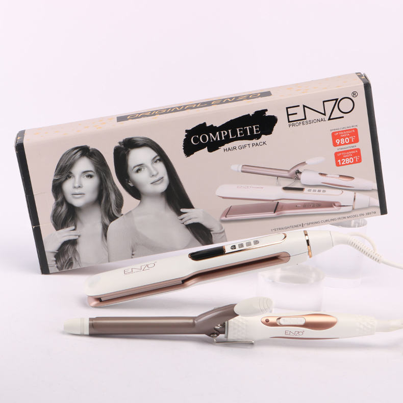 ENZO PROFESSIONAL Pack 2 en 1 مكواة فرد وتجعيد الشعر الإحترافيEN-3887W باك انزو