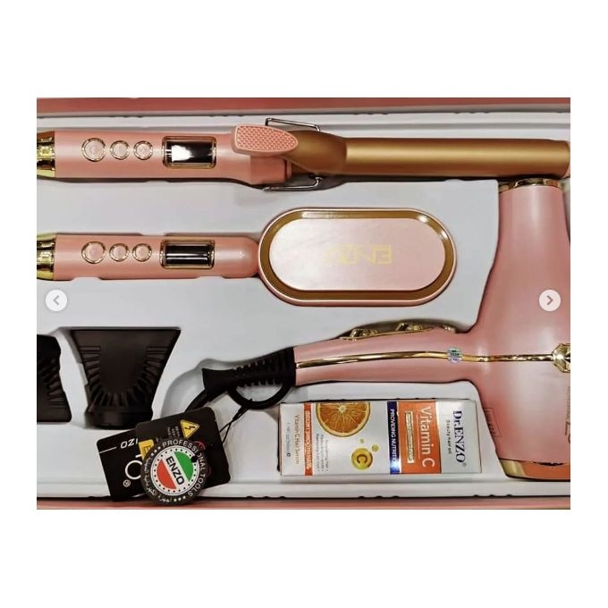Pack 3 en 1 enzo 6301 séchoir + brosse lissante + Boucleur enzo EN-6301 rose