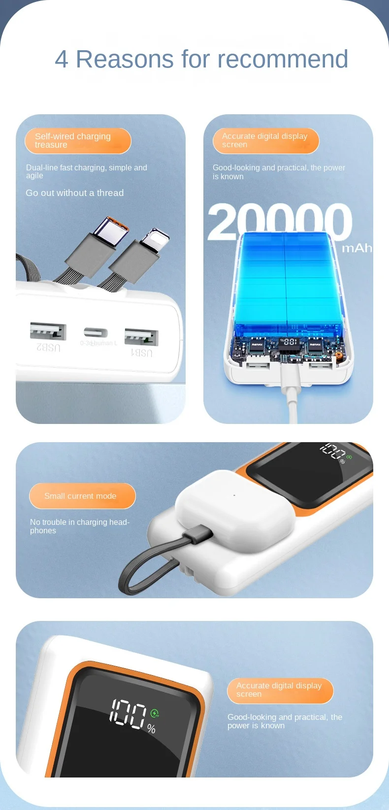 | Couleur | Black 50000mAh, White 10000mAh, Black 10000mAh, White 20000mAh, Black 20000mAh, White 30000mAh, Black 30000mAh, Black 10000mAh(2A), White 50000mAh, White 10000mAh 2A |